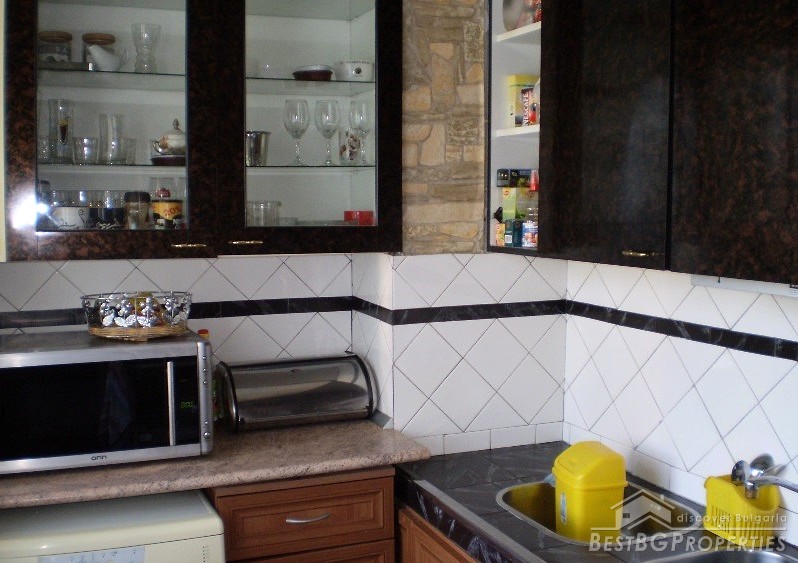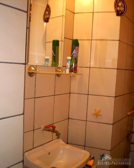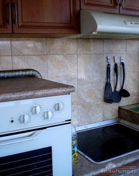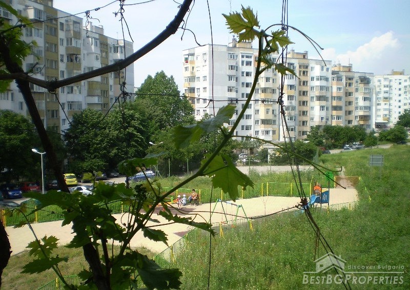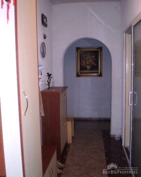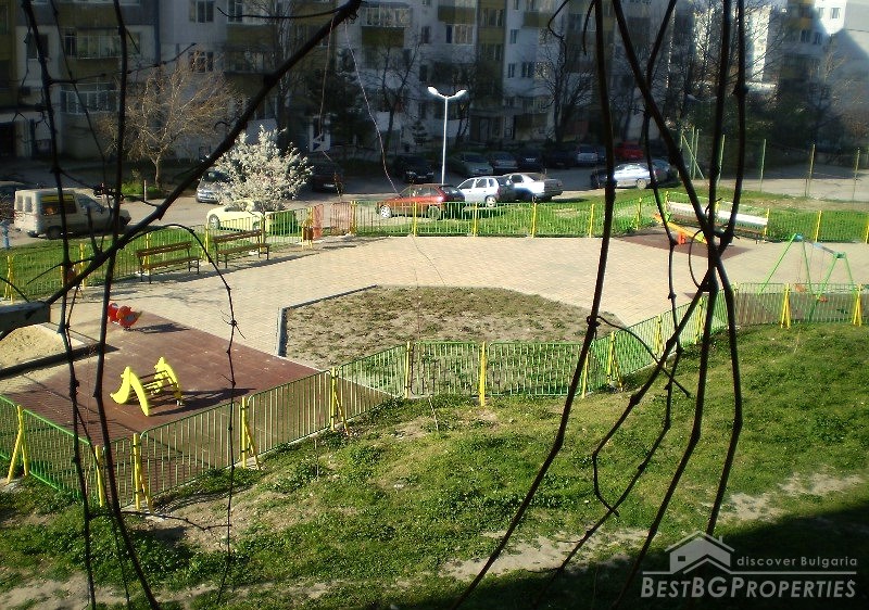 The apartment is located on the second floor of a panel residential building in the Kaysieva Gradina quarter of Varna city. It is very near the highway and the International airport. The apartment is facing north-west. It has no outer walls and is entirely middle apartment. The building has perfectly maintained common shares and intercom system. The entrance to the building is renovated and has heat isolation and PVC window joineries. Repairs are also have been made to the roof.