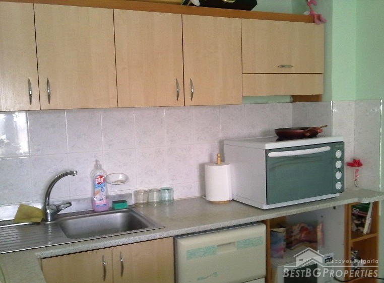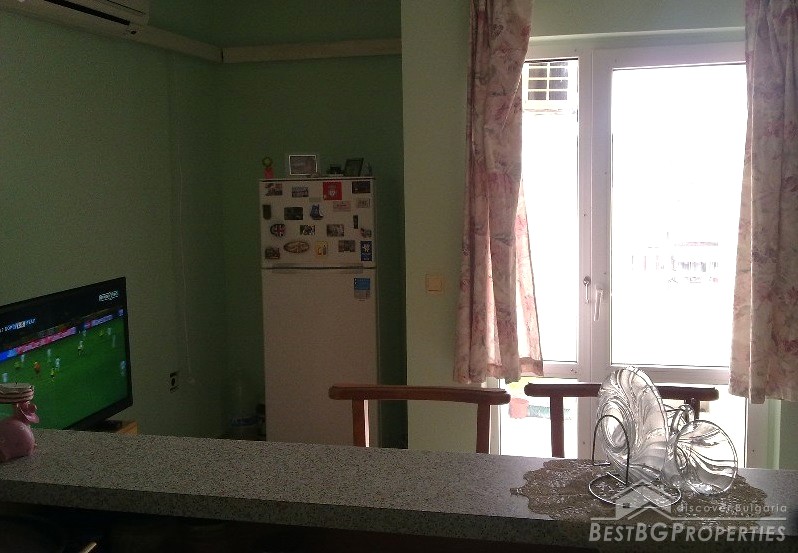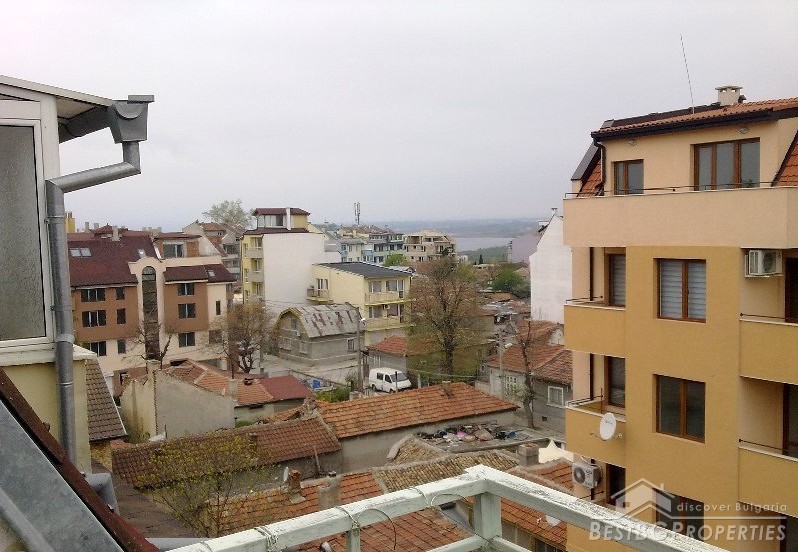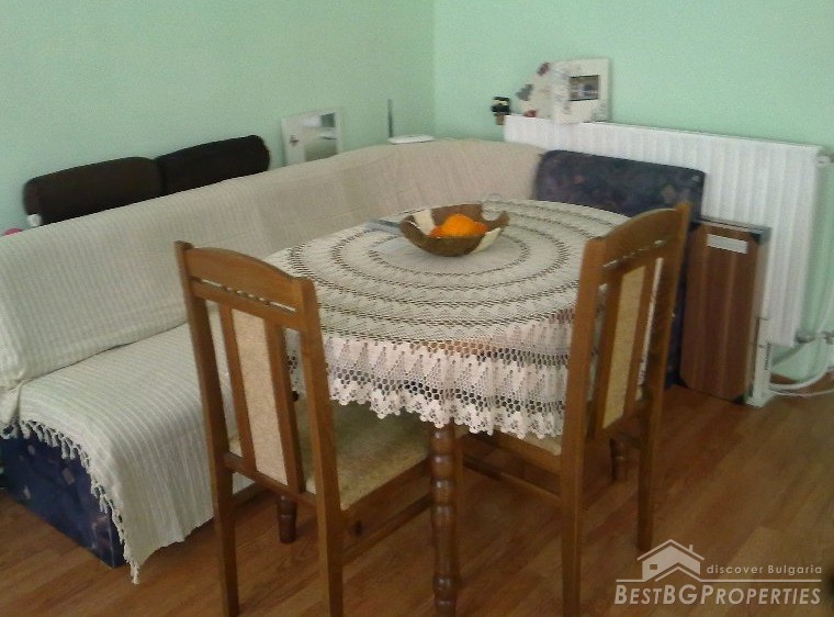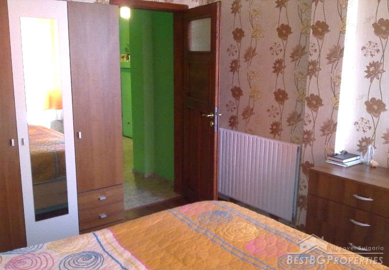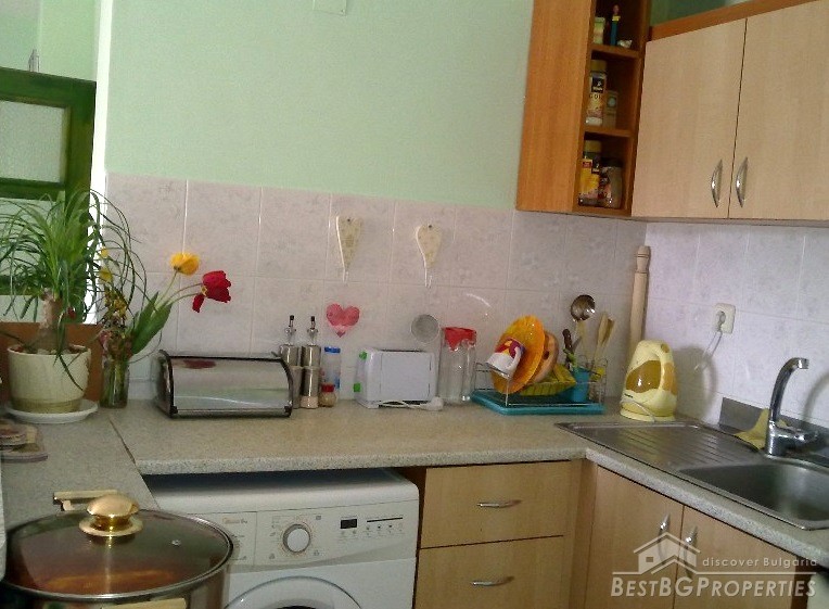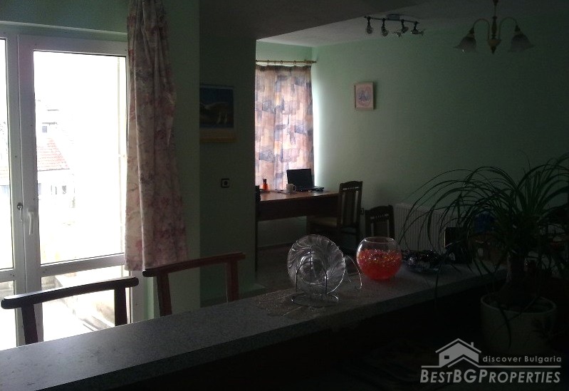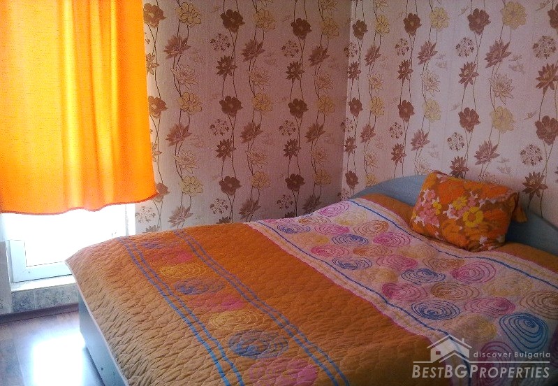 The apartment has total living area of 90 sq m, converted from 3-bedroom into 2-bedroom, without transition. The property is situated on the fifth floor of a six storey residential brick building. The building is very close to the city center, central station, Varna Lake and of course – the sea.