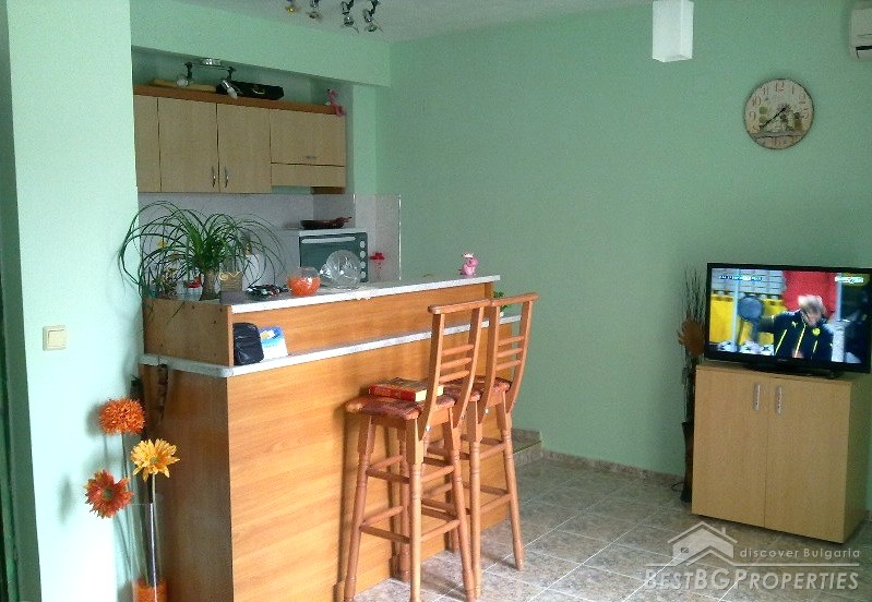 The property has two balconies, a basement, parts of the yard and the common shares of the building. There is central heating, air conditioning. The apartment is offered fully finished and equipped. There is a large double bedroom with new mattress, kitchen cabinets, small sofa, outlets for a boiler with solar batteries.