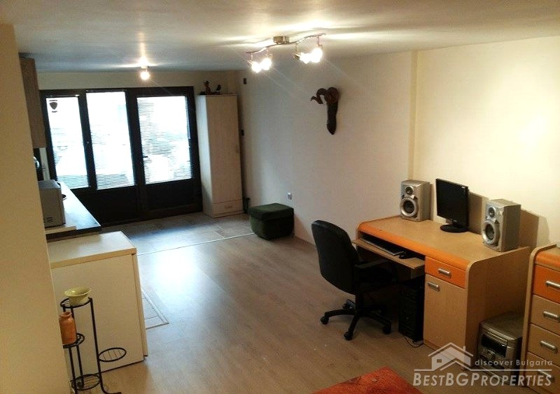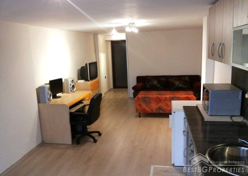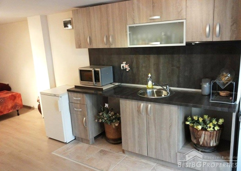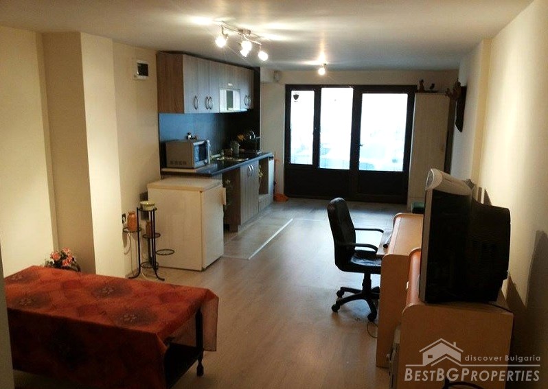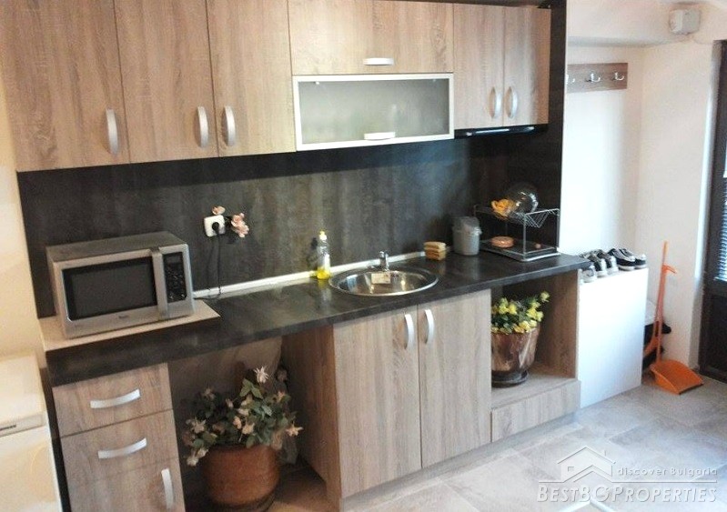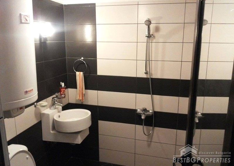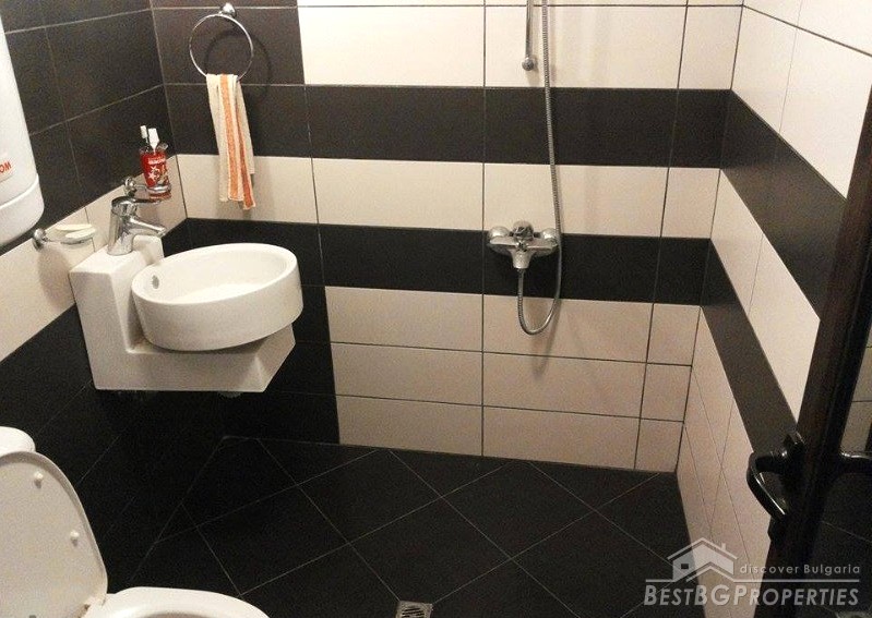 The property comes completely finished “turn key” and also with full furniture. The finishing includes PVC windows and interior doors, latex painted walls and ceilings, laminate and terracotta floors. The apartment has fitted kitchen with fridge, microwave, sink. There is a sofa, table, wardrobe, double bedroom – all necessary furniture and equipment.