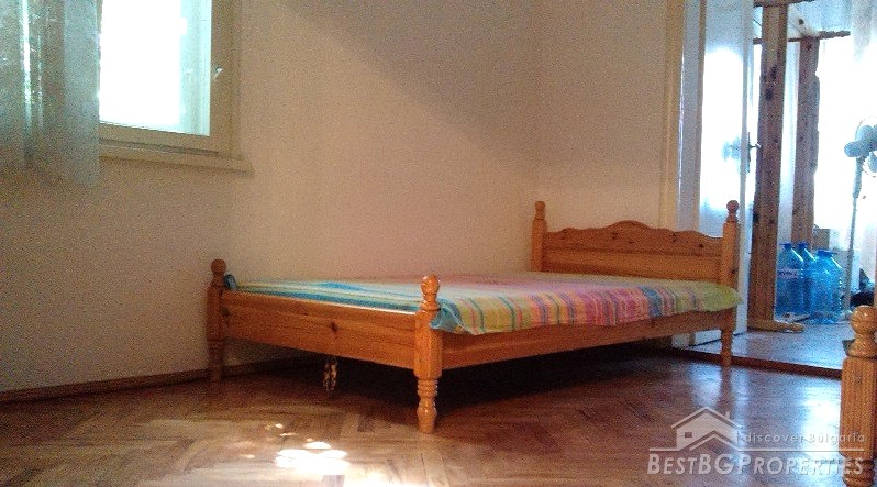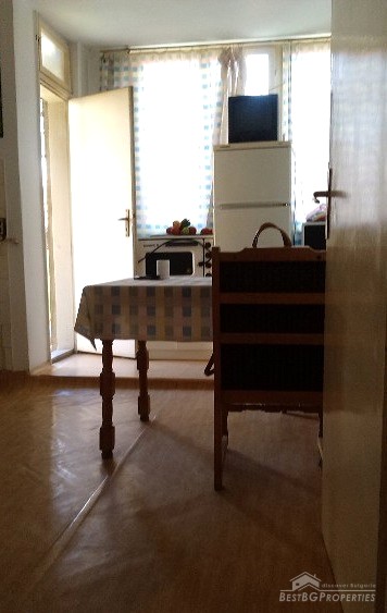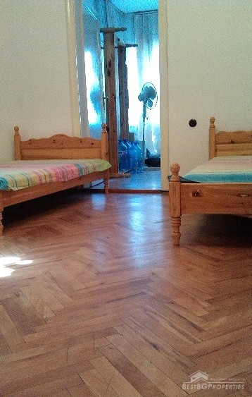 This is a spacious, two-bedroom apartment for sale, located on the third floor of a brick residential building in the center of Varna City.