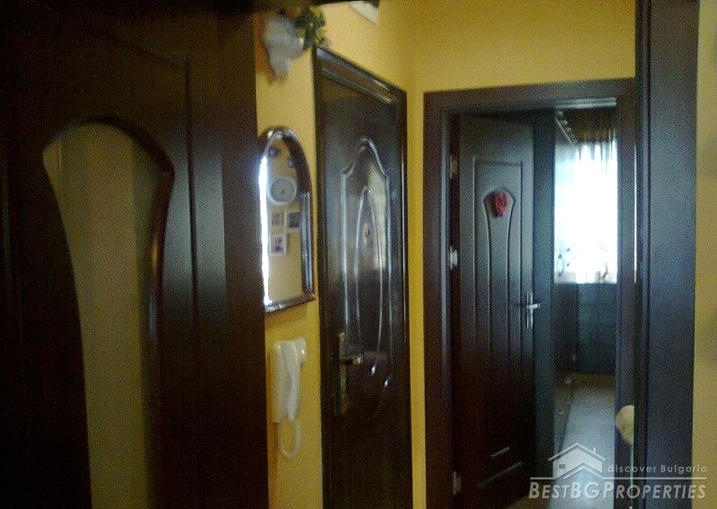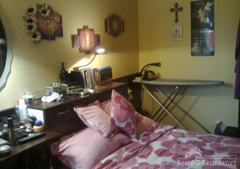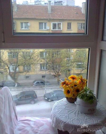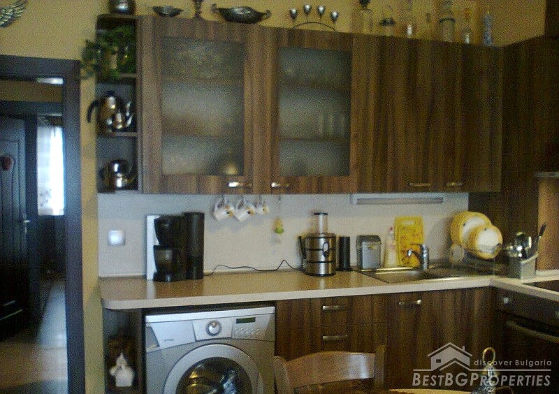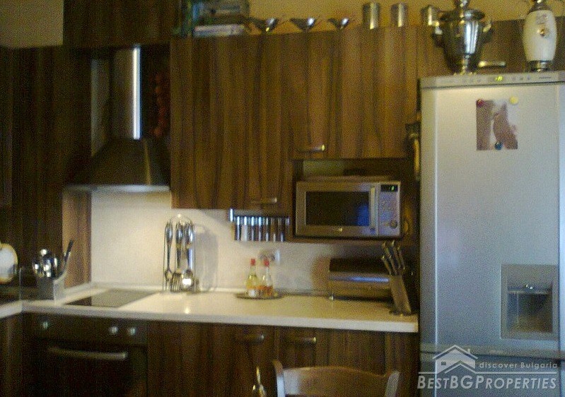 The apartment consists of living room with kitchen box, lounge, large bathroom and WC, one bedroom and two glazed balconies. It is south facing, very warm and bright. The apartment has very functional distribution of the premises.