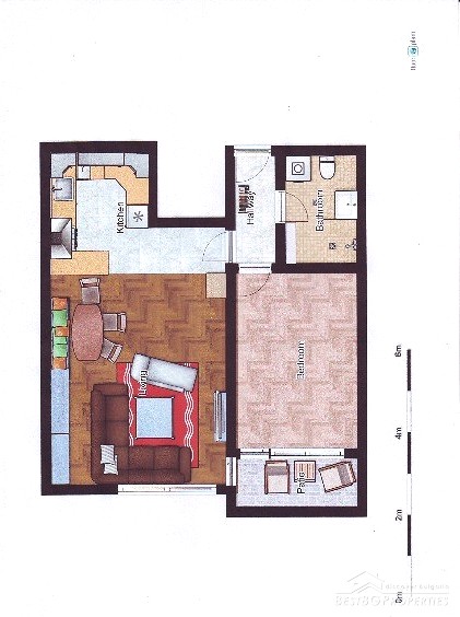 The construction is completed on 99% and Act 16 is yet to be received in November, 2014. The apartment has great distribution of the premises! It consists of a spacious living room with kitchen box finished with granite tiles (37 sq m), one bedroom (12.6 sq m), granite hallway (3.7 sq m), finished and equipped bathroom (6.4 sq m), balcony (5.2 sq m) and a basement (4 sq m).