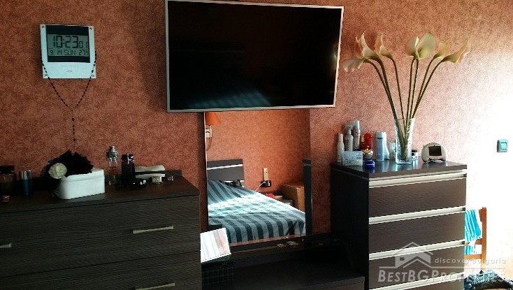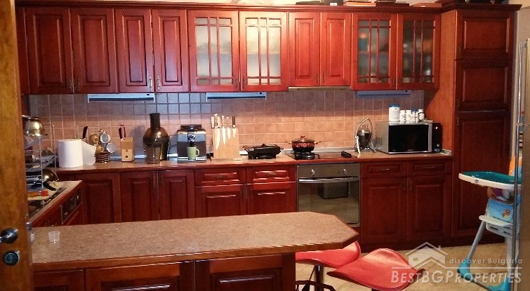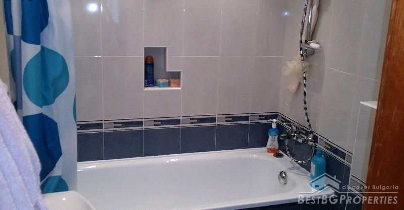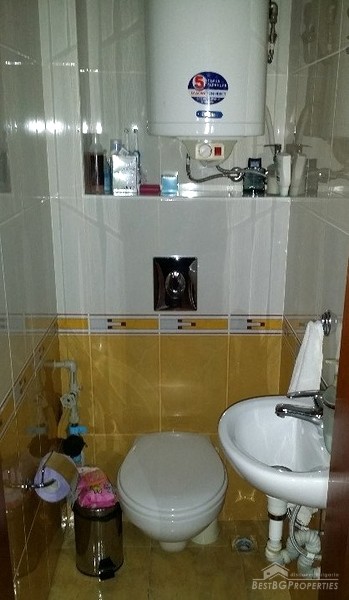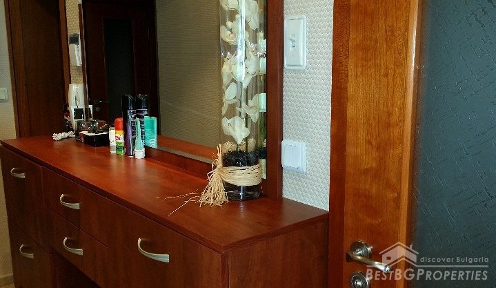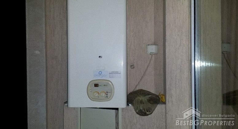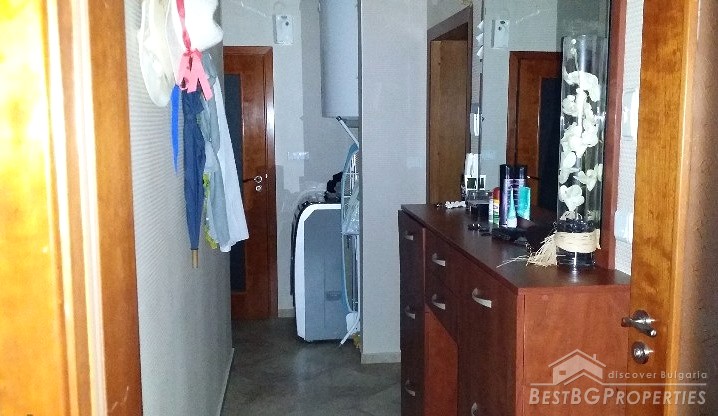 The apartment is facing south-east. It is fully furnished and equipped. The apartment has separate heating system on gas and two boilers. The distribution is as follows: two bedrooms, dining room with kitchen, living room with guest room, bathroom, toilet and two terraces.