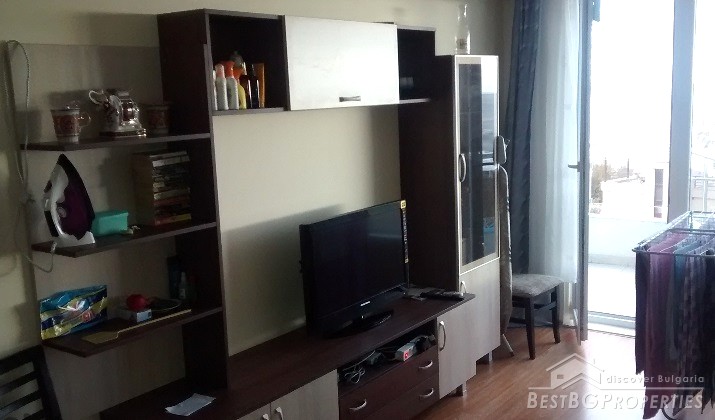 It is a fully furnished apartment, situated in a new building. It is on the third floor (due to the slopped terrain the entrance to the building is from the second floor). The total living area is 60 sq m and the distribution of the premises is as follows: entrance hall, living room with kitchen, terrace with beautiful sea view (access from both rooms) and a bathroom with toilet. The clean living area is 54 sq m + % Ideal shares of the common parts of the building.