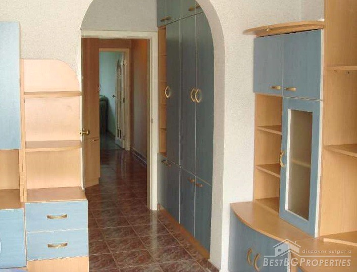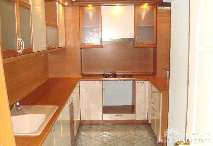 The apartment is really large, having total living area of 150 sq m. It is on the fourth floor out of 7 in a residential building completed in 2004. The apartment consists of 5 rooms. It is semi furnished and equipped. It has two modern kitchens with "Metron" equipment. The property is facing south-southwest and is very warm and bright. It is sold the way you see it on the photos - ready to move in right away.