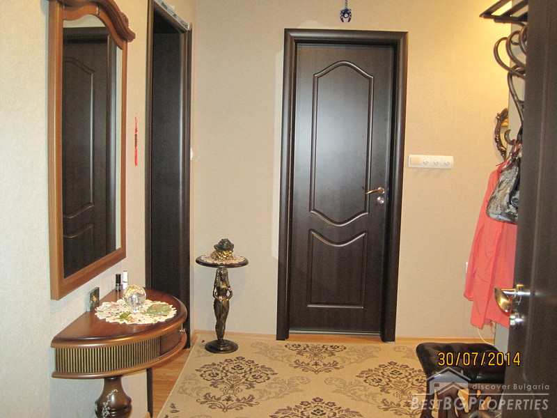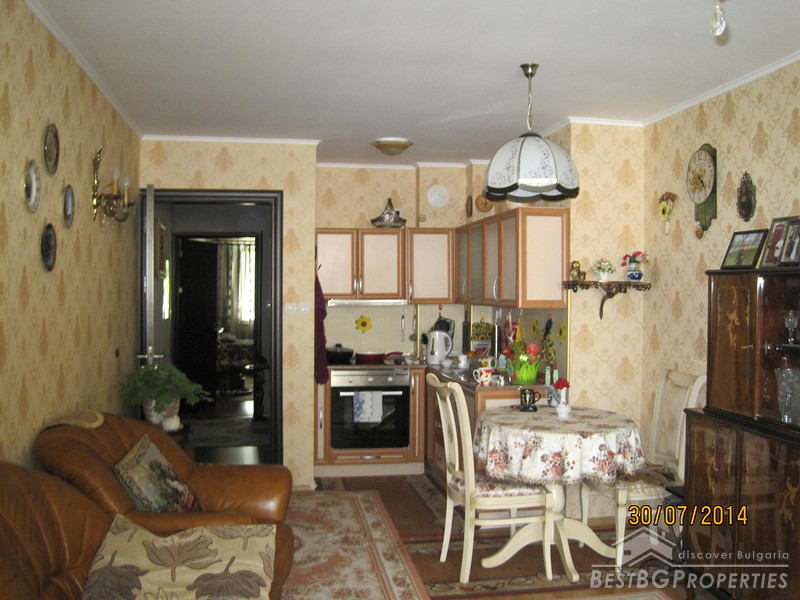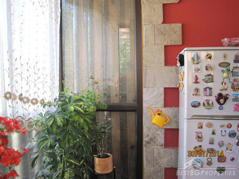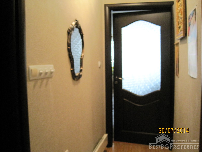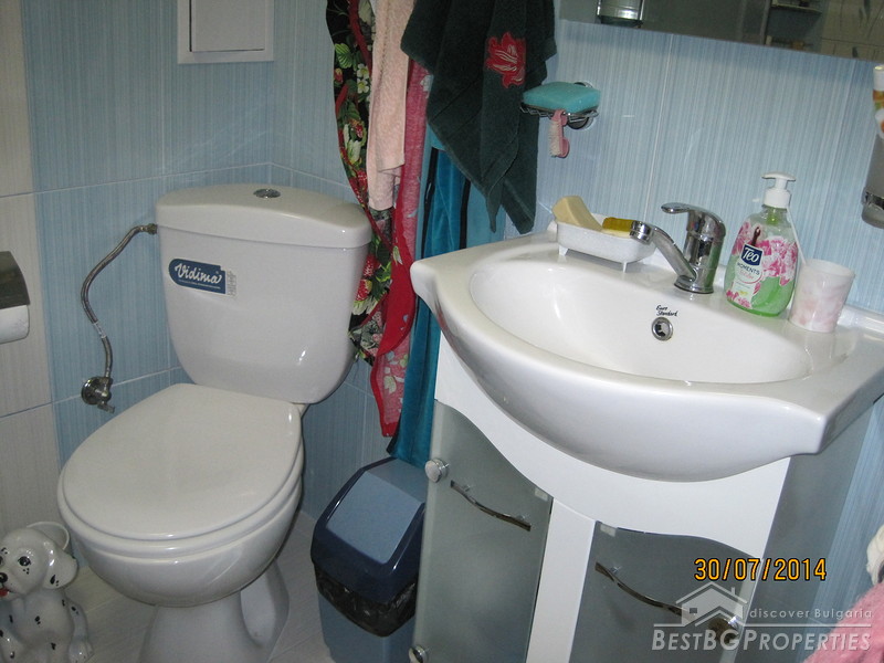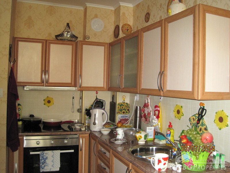 The apartment is in excellent condition with equipped kitchen that includes built-in appliances (hob, oven Indesit, extractor). The apartment has cable TV, Internet and telephone. The apartment was purchased in April 2013. The monthly maintenance fee is 8 lev.