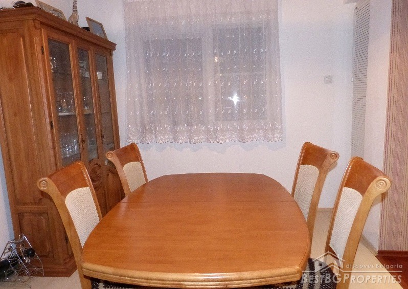 The prince includes all of the furniture - cabinets, dressers, wardrobes, sofas, kitchen cabinets. In the hallway there is a built-in wardrobe. The furniture is made of solid wood. The apartment has two high-end air conditioners. The floor covers are finished with parquet, the window joineries are K glass, 30 mm. The terrace to the kitchen is glazed. There are blinds, mosquito nets everywhere. The apartment has external and internal insulation.
