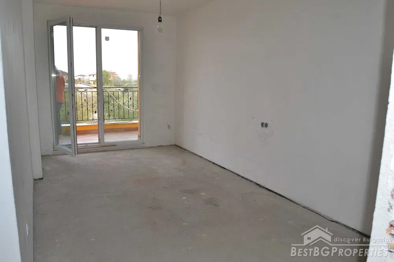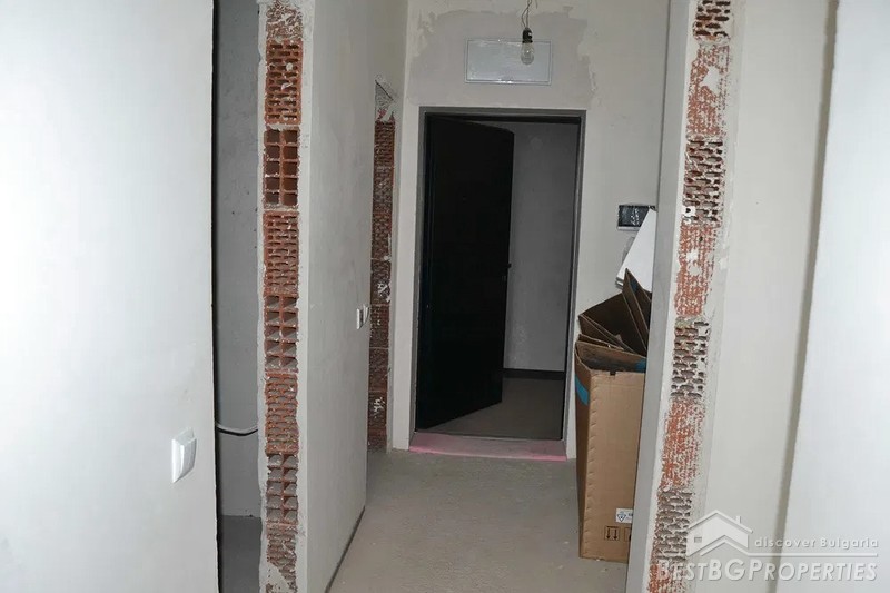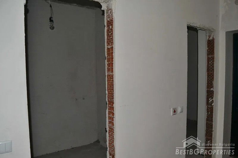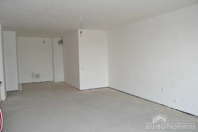 The apartment offers breathtaking panoramic views of the Balkan Mountains and Vitosha Mountain. It is one-bedroom, spacious apartment with Act 16 and a built area of 87.82 sq m (99.10 sq m of total living space). It consists of an entrance hall, a closet, a bathroom with toilet, a spacious living room with kitchenette and a terrace. The apartment has southeast exposure. It is very light and warm. The heating is via air conditioners. For sale on ground coat and putty.