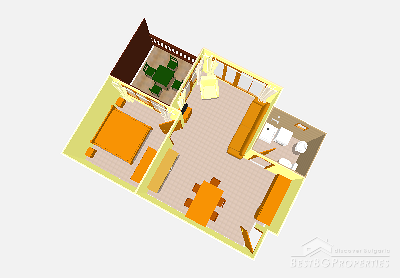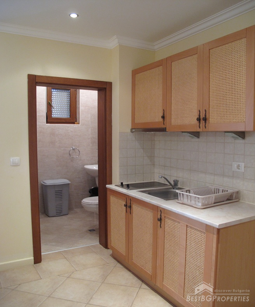 The offered apartment is with size 60.5 sq m, located on the second floor and has two entrances (from the staircase and a separate entrance from the street).