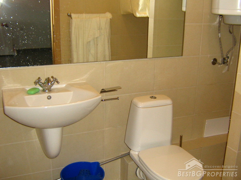 The apartment is nicely finished with high quality materials and special care for the details. The floorings are terracotta, the walls and ceilings are painted with latex paint. The window joinery is PVC. The bathrooms are finished with terracotta and faience. There is water and electricity provided. The apartment is fully air conditioned.