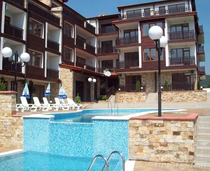 The complex has controlled access, open air swimming pool, private green areas and incredible view of the mountain and Sunny Beach. The area is quiet and peaceful. The complex is at 2 km from the resort.