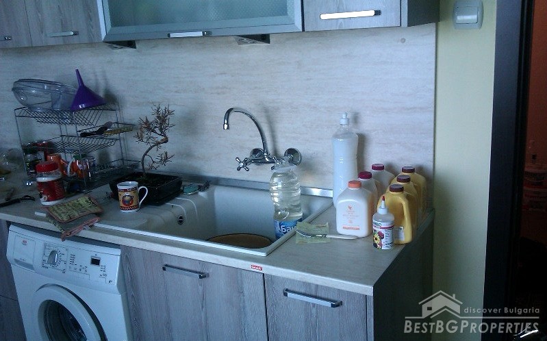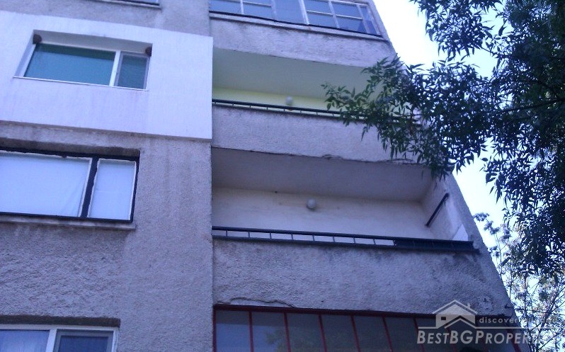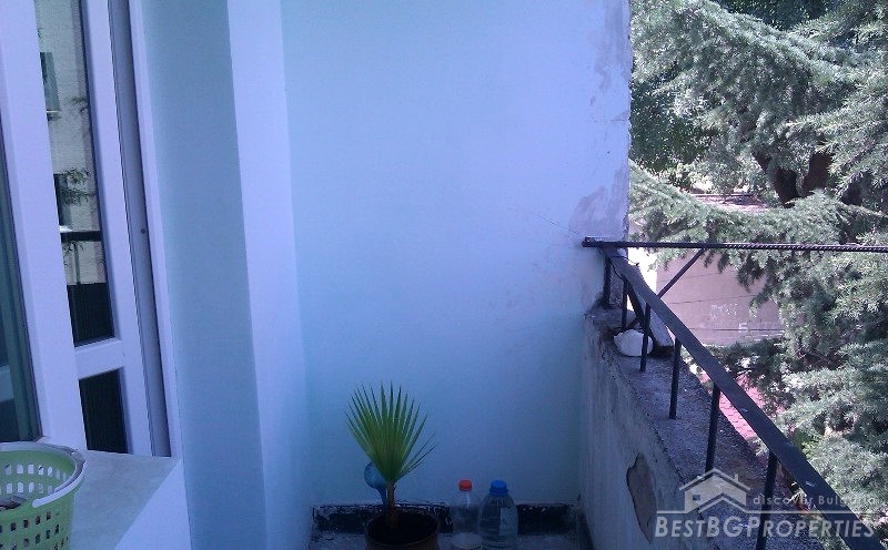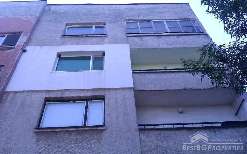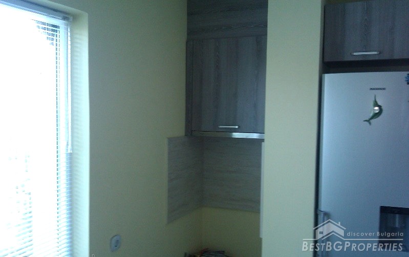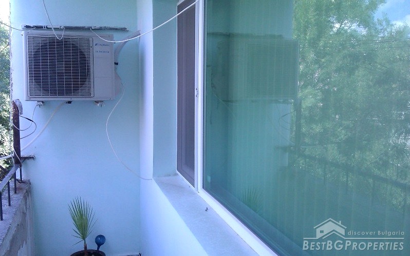 The apartment is situated in the third floor of a four storey panel building. It has a splendid sea panorama. The apartment is renovated and has outside isolation and new PVC windows. The total living area is 76 sq m. It consists of a living room, one bedroom, kitchen and two balconies. The kitchen is fully equipped with everything necessary.
