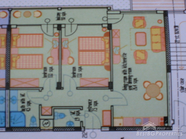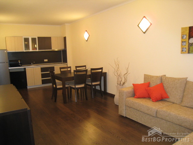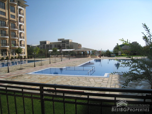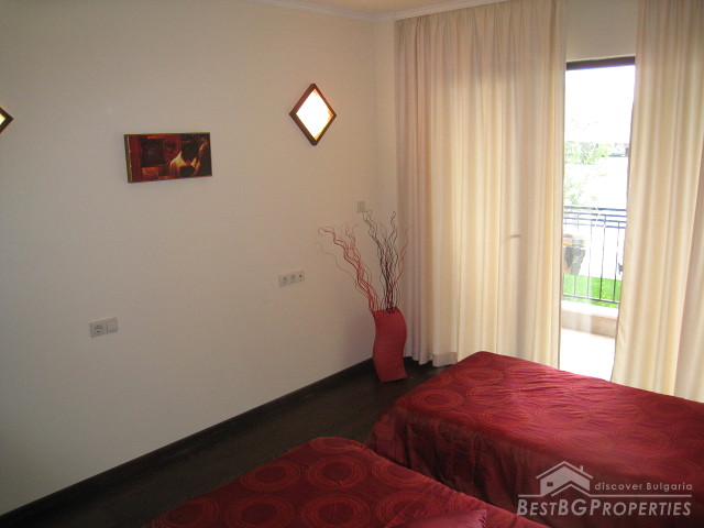 Our next suggestion is an apartment in a luxurious complex located in the famous Bulgarian sea side resort Golden Sands. It is 18 km away from the city of Varna, 147 km from Burgas and its International Airport and 52 km from the town of Dobrich. The complex is situated in the middle of a unique park with total area of 15000 sq m, which is only 100 meters away from the seaside in the most attractive part of Golden Sands resort complex and it offers apartments with magnificent view to the sea and park. The building complies with the modern conception of luxury and it meets the highest European standards in construction. Apart from the coziness of the luxurious apartments, the comfort of the complex is also attributed to: