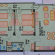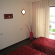 The apartment A 108 is situated on the first floor of the complex. It is 99.55 sq m in size. The view from the apartment is to the pool and sea. It consists of living room, kitchen, two bedrooms, corridor, two bathrooms and a big balcony with entrance to each room. Every room is air conditioned. The apartment is fully furnished with deluxe class. The living room consists of corner couch, bed and wardrobe. The kitchen is also fully equipped with all required kitchen unites - fridge, oven, absorber, microwave. There is a table and chairs. In the first bedroom there is 1 bed, mattress, and big wardrobe. In the second room there are 2 beds and a wardrobe. The bathrooms include shower cabin, sink and sanitary equipment.
