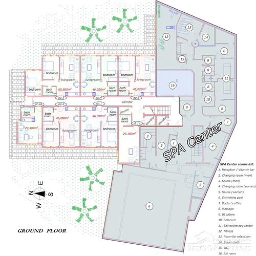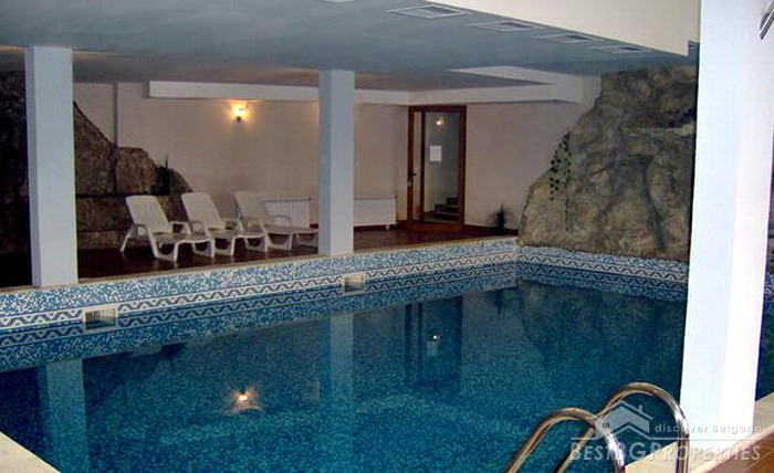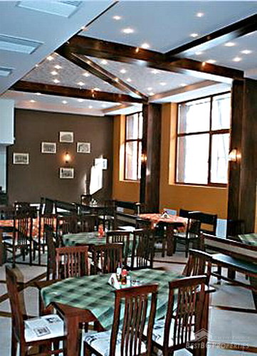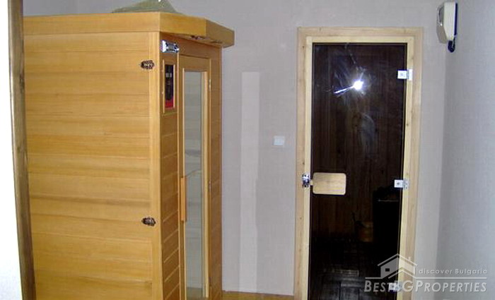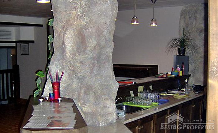 On the downstairs in the communal parts you can find yourself in different world with the unique design of the SPA centre using cliffs, rocks and trees coming from the floor up to the ceiling. And also you can rest your day using the steam bath, the swimming pool and two types of sauna (infrared and steam). If you feel like training there are fitness center and vitamin bar at your services. For breakfast, lunch or dinner you can try the restaurant which can accompany up to 170 people, has its own fireplace and even a waterfall to assure yours most pleasant time while having one of the finest Bulgarian dishes.