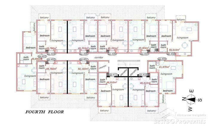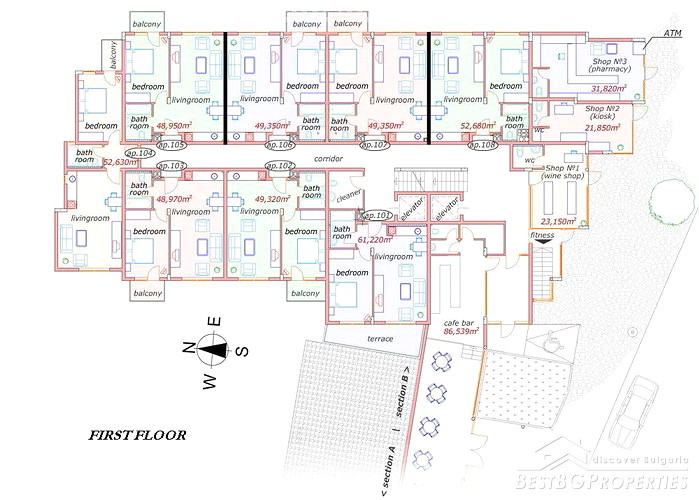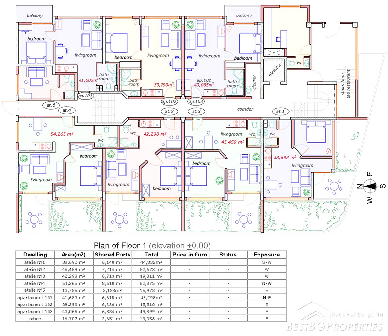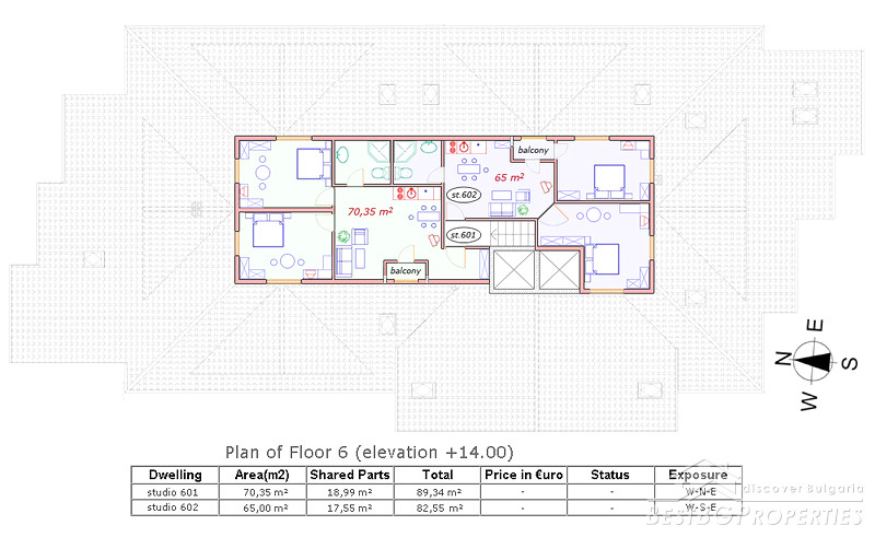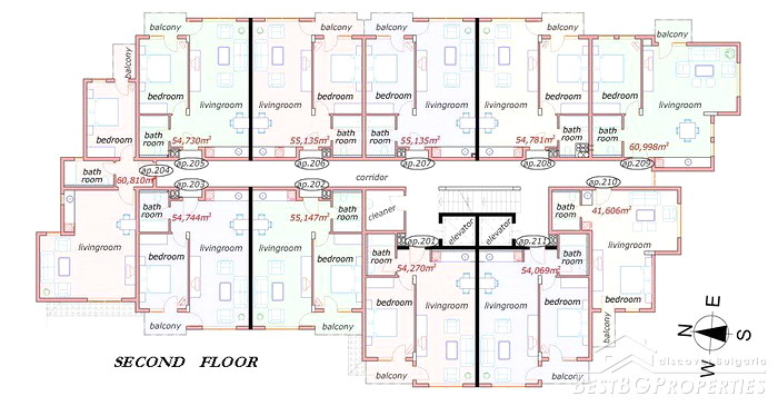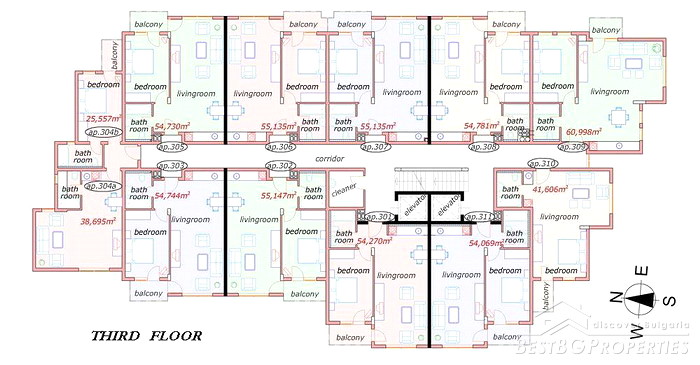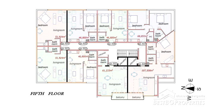 The building has 6 residential floors with 53 apartments, 3 studios and a VIP apartment with individual elevator. Every apartment has fully furnished - living room, bed room and bathroom, internet connection and cable TV.