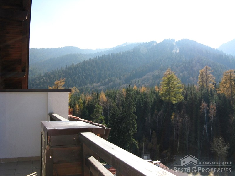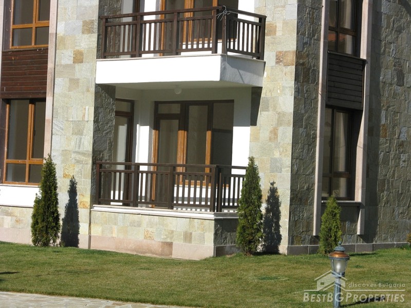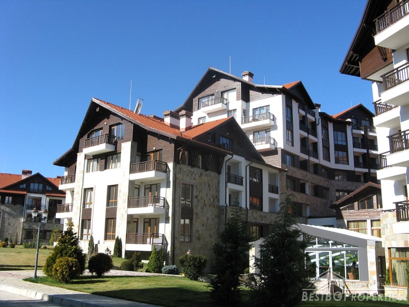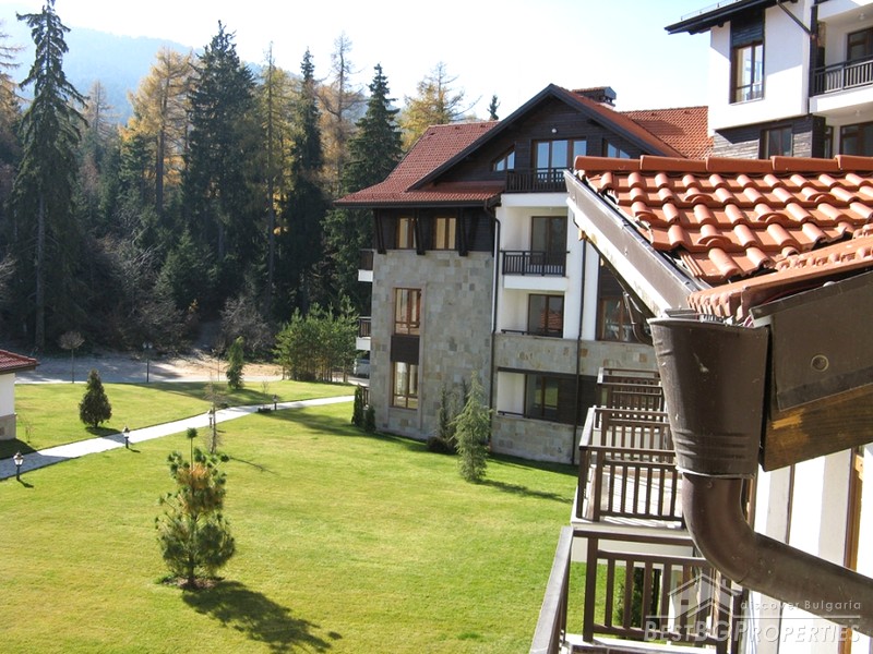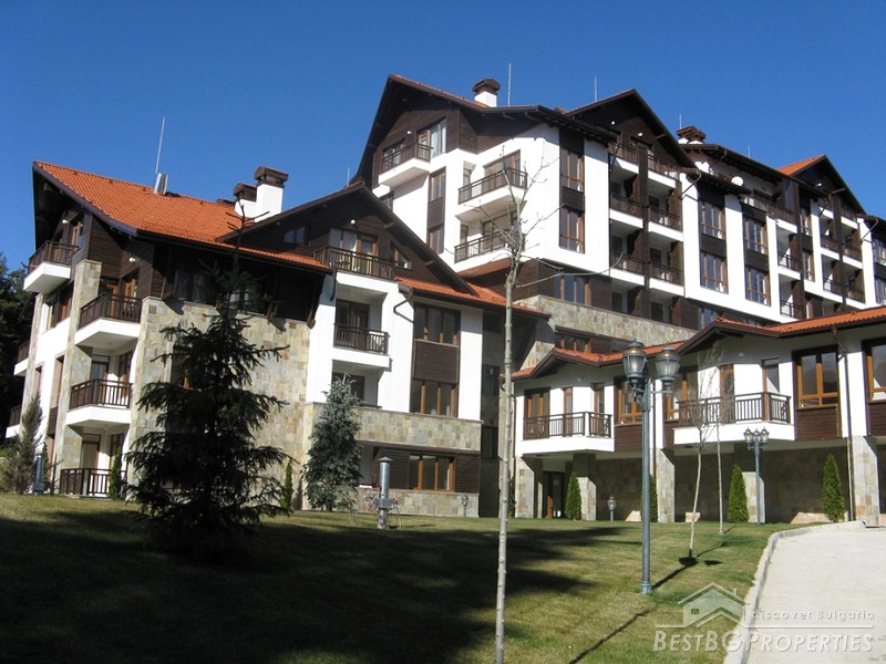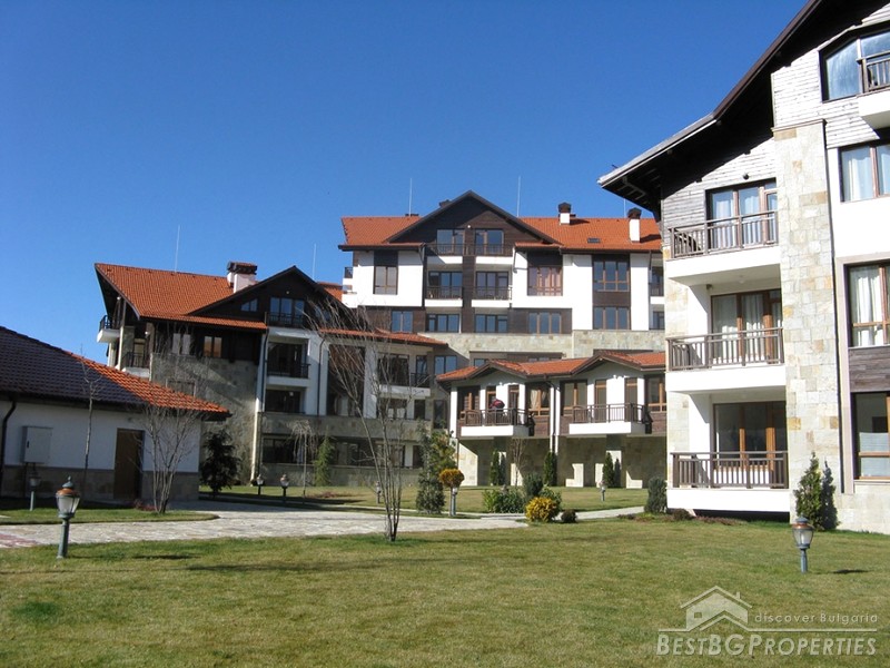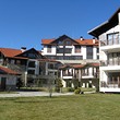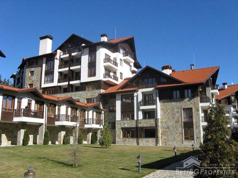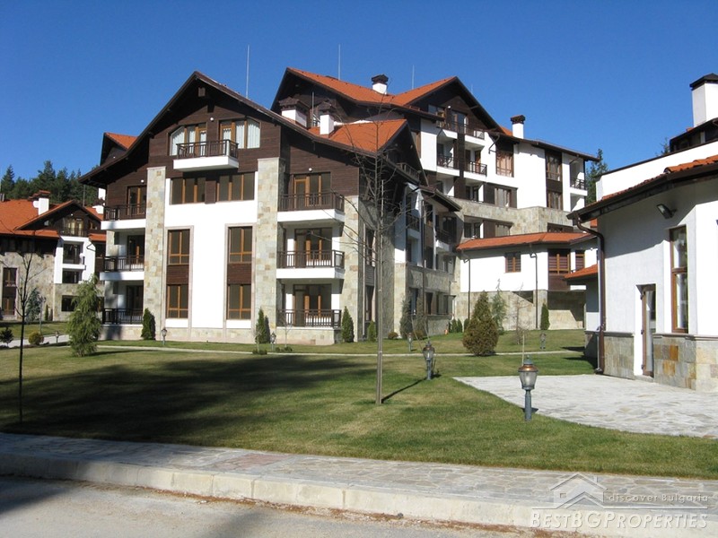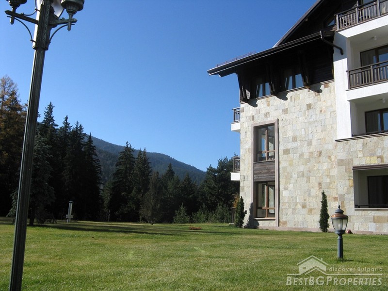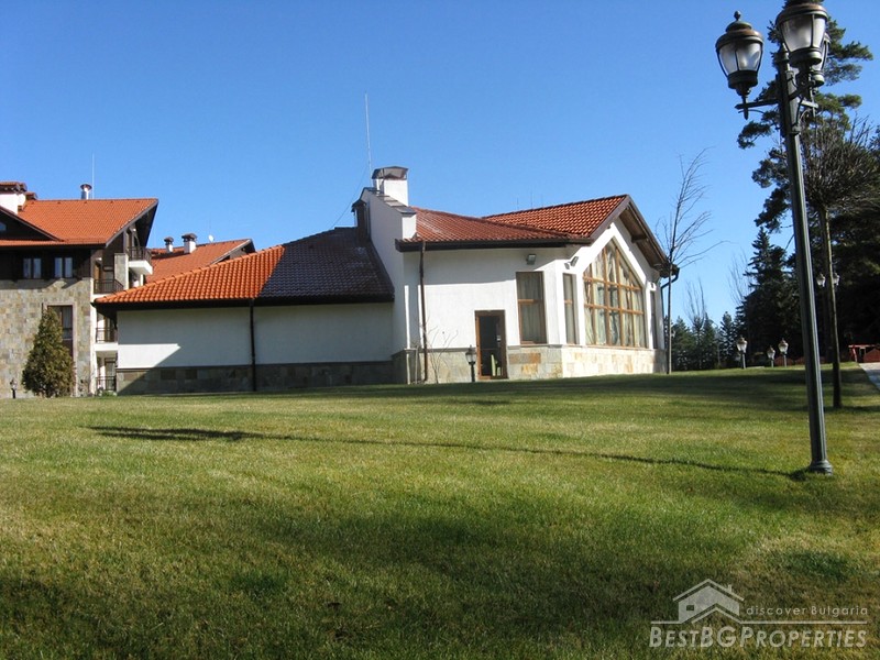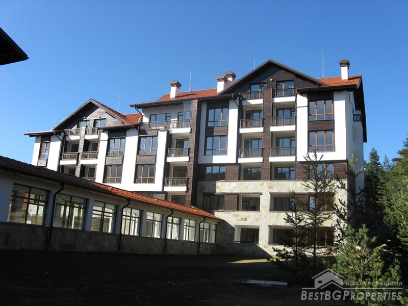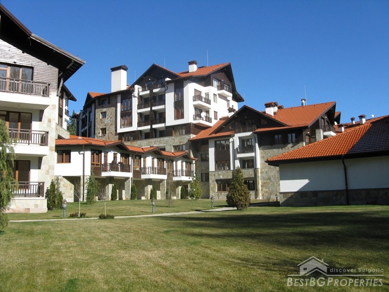 The complex comprises four connected units: one of them is a five-star spa hotel with a restaurant, and the remaining three units are hotel rooms and apartments. The complex will be developed over 21 000 sq. m of land. The combined developed area of the buildings totals 21700 sq. m. The buildings are situated to the back of the plot, which leaves sufficient space to create a courtyard to the south with ample landscaping with alleys. All apartments face south, southwest or south east, and all open on a magnificent mountain landscape.