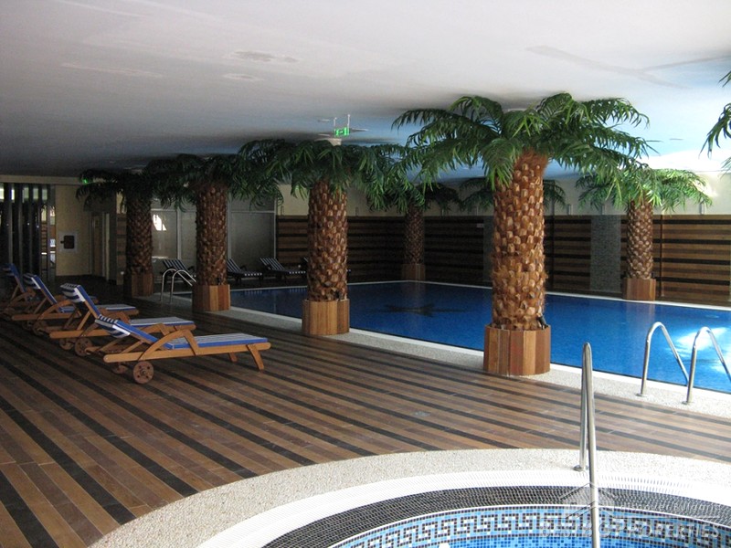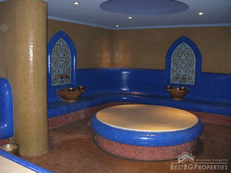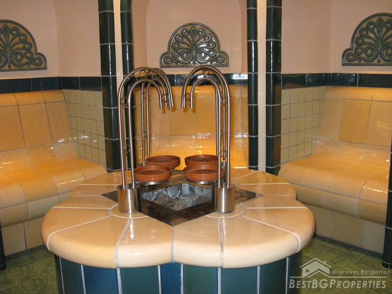 The spa center has a swimming pool, sauna, Turkish bath, Russian bath, temperature-contrast pool, hot tub, whirlpool bath, Vichy bath, pearl tub, tanning beds, a medical cosmetics parlor, physiotherapy section, gym, four medical massage parlors and doctors' offices.