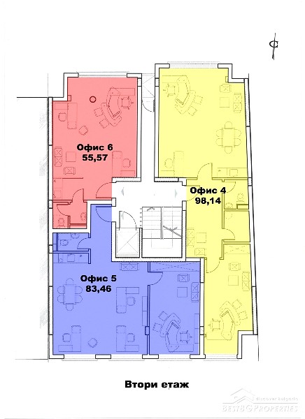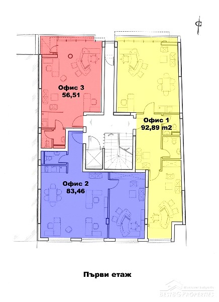 The building area is rationally distributed insuring the comfort of the residents. There are few offices located on the lower floors, studios and one-bedroom apartments.