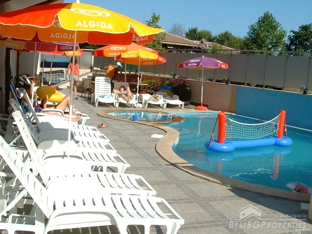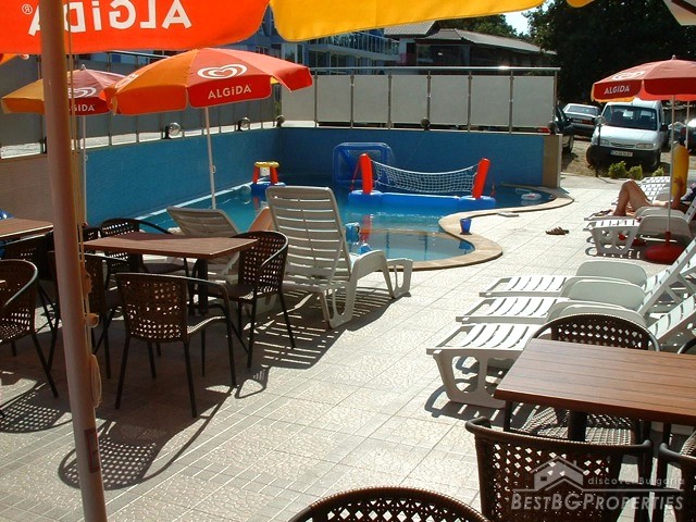The complex disposes with 22 comfortably furnished apartments, allocated at 5 stories with lift, lobby bar, outdoor pool with Jacuzzi, children pool, rumpus room for children, panoramic terrace on the roof. It is offering also capabilities for holding of conferences, workshops, trainings with hall capacity up to 20 participants. There are 22 apartments - 6 studios and 16 double apartments.