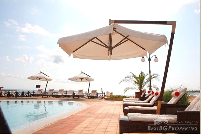 This is an offer for three luxurious apartments for sale. The apartments are located in a large complex on the south Bulgarian sea side 60 km from the city of Bourgas and 450 km from the capital Sofia. The resorts Tsarevo and Primorsko are situated in close proximity. The complex is situated right on the beach. It comprises a surf school, three pool bars, open air swimming pool, children's pool, sport facilities, children's playground. Inside of the complex there is a shop, two cafés, business and internet clubs, kinder garden, large restaurant with 300 seats, lobby bar and SPA center. At the disposal of the guests there is cable TV, telephone and internet.