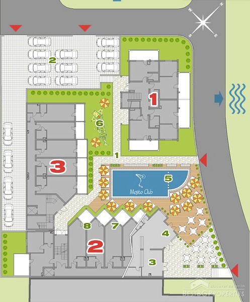 The square surfaces of the apartments range from 28.37 sq m to 109.02 sq m. All of the properties are located in three buildings in a gated type complex with secured parking lot, cafe-bar, mini market and outdoor pool. Each block of flats comprises with an elevator.