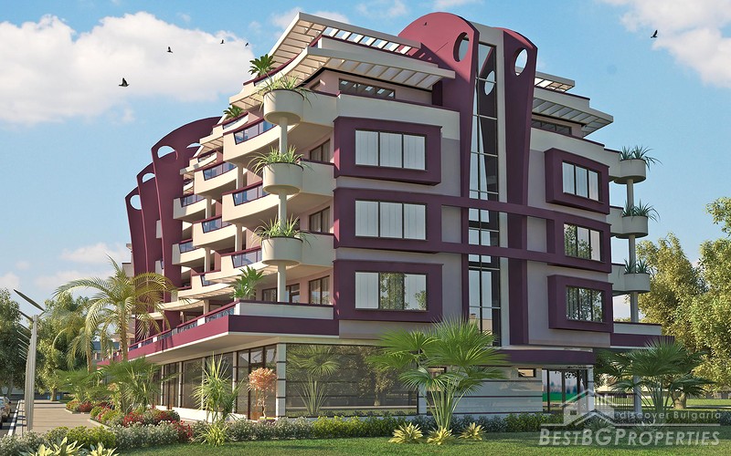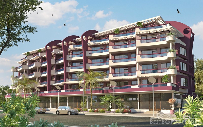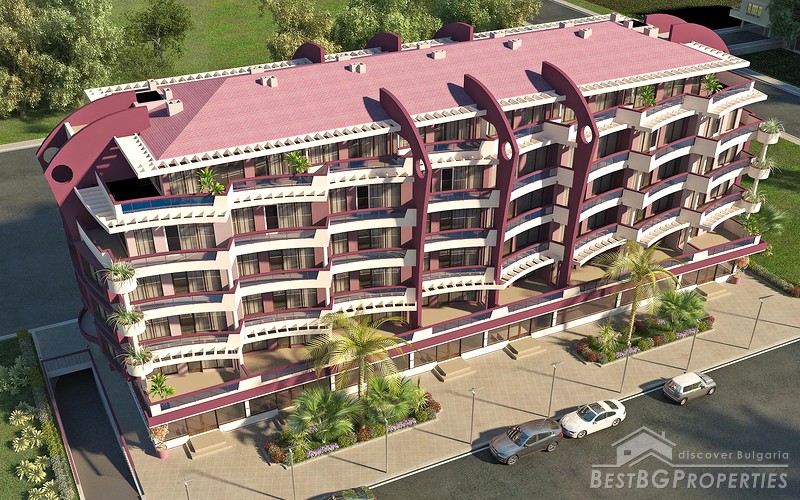 This complex is a building with modern, distinctive and unusually attractive architecture. It consists from six floors and 76 apartments and studios with areas from 47 up to 89 square meters distributed on five floors. On the ground floor are reception desk, pharmacy and grocery store.