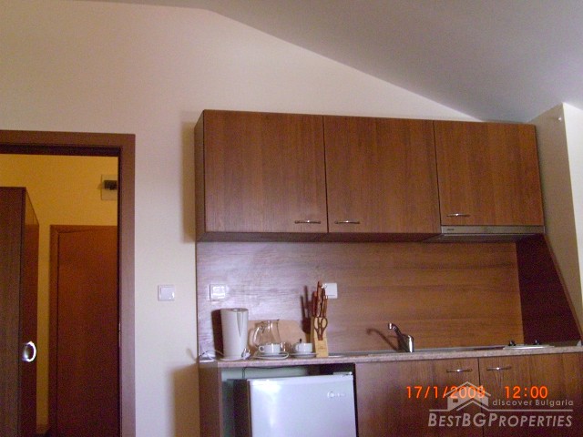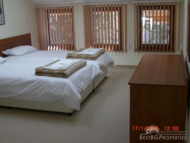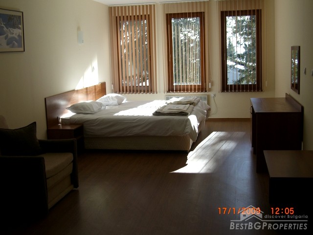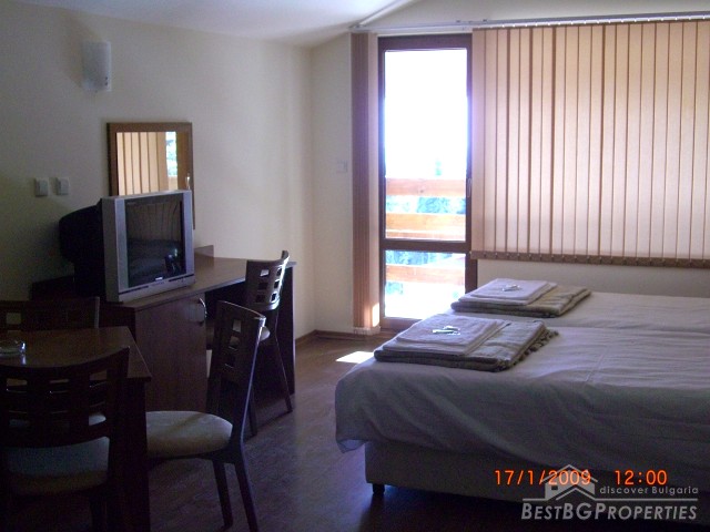 The complex is situated in a pine-tree forest on the south part of Pamporovo, 800m away from the peak of Snejanka and only 700m from the main ski runs and chair lifts. The surroundings and the closeness of the communication facilities make the place and the complex perfect for relaxation, winter and summer tourism, skiing. The complex offers 45 cozy studios and apartments, from 29.50 to 112.95 sq.m., 15 parking lots in the underground parking, lobby bar, fitness, sauna and ski-warderobe. They offer housekeeping and security all around the year and maintenance.