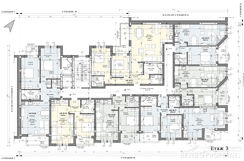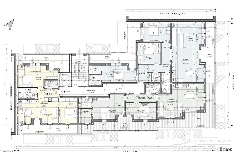 We offer you apartments for sale in a boutique high-class residential building with four sections (A, B, C, D). The project is distinguished by modern architecture, excellent location and first-class materials.