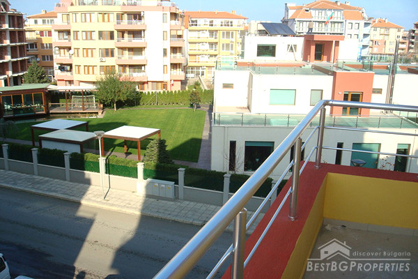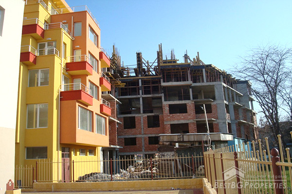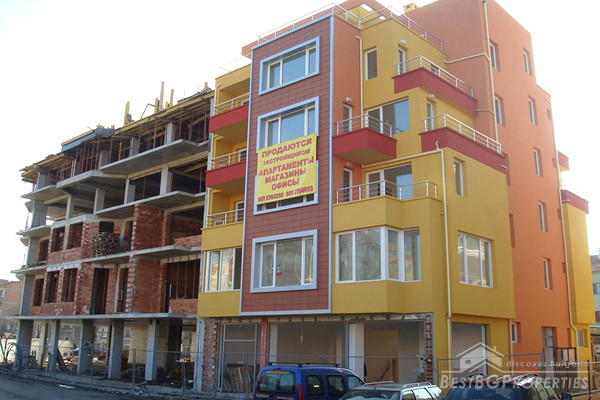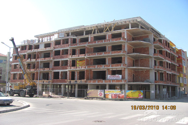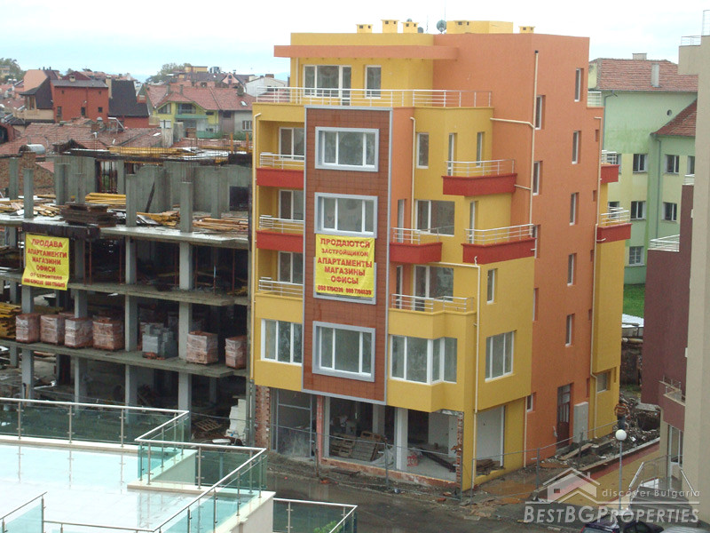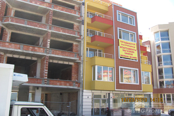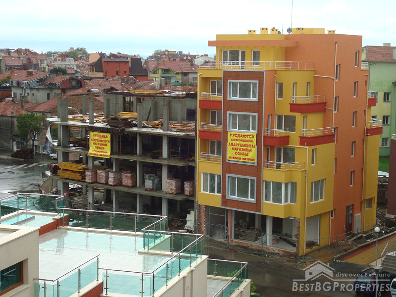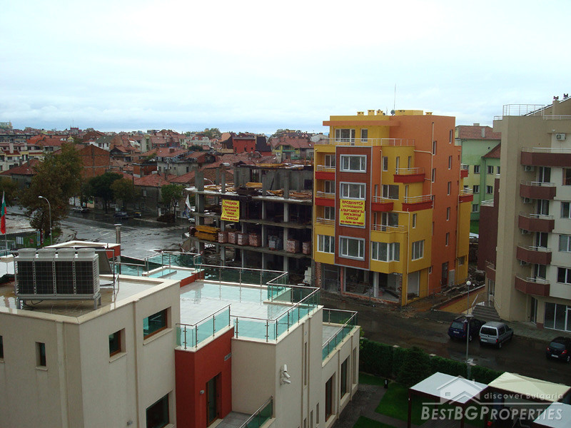 The massive residential building, consisting of ground floor, four floors with flats and terraces, is situated in the resort of Pomorie.