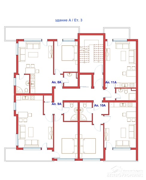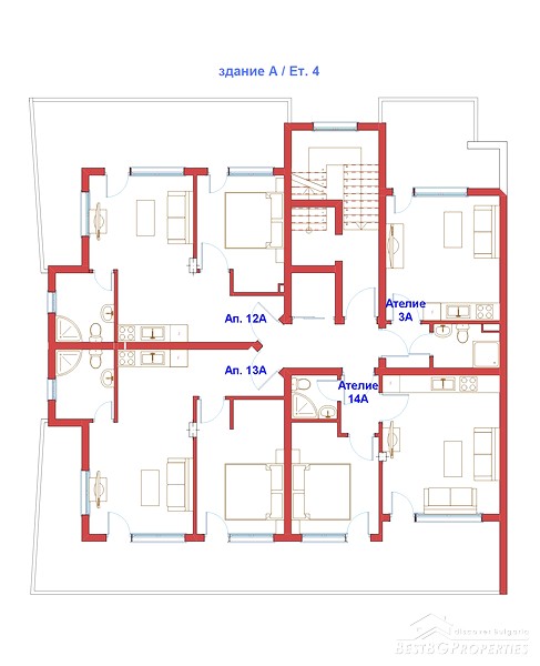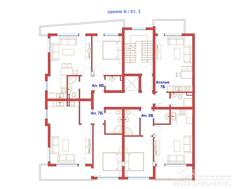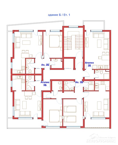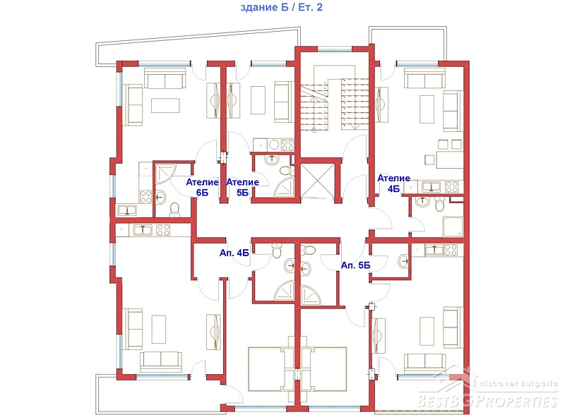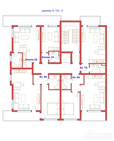 We are offering to your attention apartments and studios for sale located in a residential complex for whole year around living, construction of which is completed in the early summer of 2012. The complex consists of two 5-storey buildings.The buildings have act 16, - installed windows, complete electrical installations and plumbing, plastered walls, floor cement leveling is made. There are already laid tiles in corridors, stairways and terraces. The apartments and studios are finished "on key": walls and ceilings - latex, floors - terracotta or laminate, bathrooms - fully equipped.