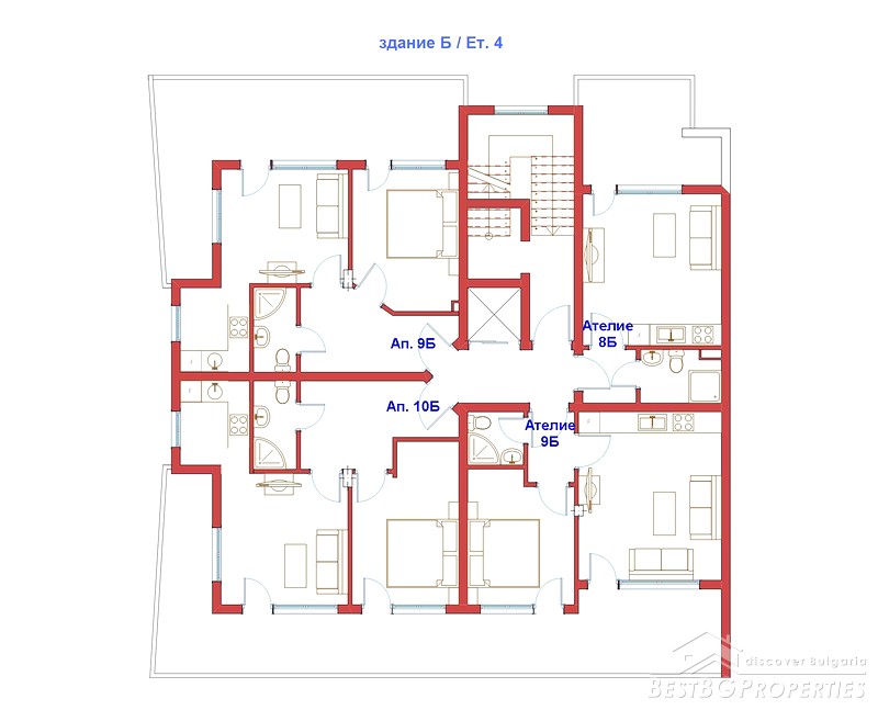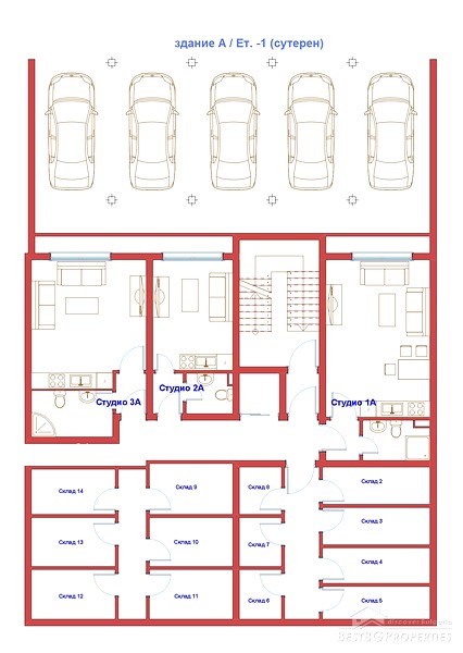 All apartments in building B have warehouses located in the apartments. They have all communications installed (electricity, water, sewage) and can be used for different purposes.
