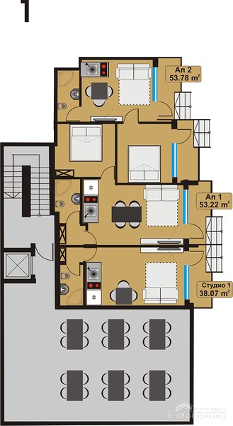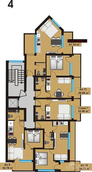 The annual maintenance fee for the apartments is 10 euro / sq.m. (VAT).