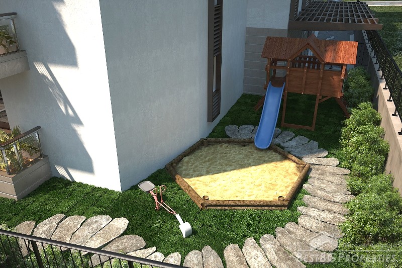 The complex consists of 32 apartments with one and two bedrooms ranging from 58.03 sq m to 160.23 sq m. On its territory there will be:
