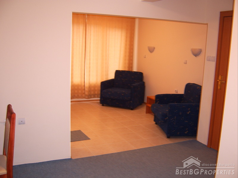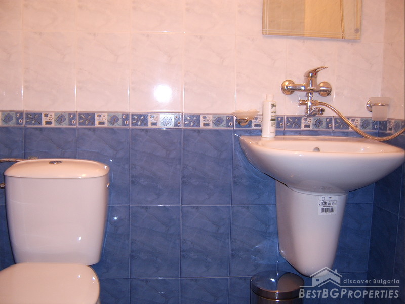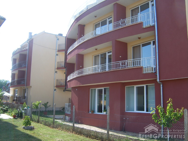 The complex is completely finished and has act 16. It consists of two buildings. The first one comprises the hotel part and the second apartments. The apartments are for sale furnished but without the kitchen box. There is a possibility for installing one for additional price. There are 5 studios left for sale and 1 one bedroom apartment on the ground floor. The building is four storeys with nice landscaped yard.