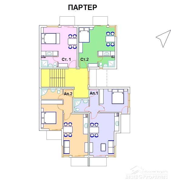 The building is situated just 250 meters from the shore, and 400 meters from the center of Ravda. In the area there is well developed transport, social and economic infrastructure.