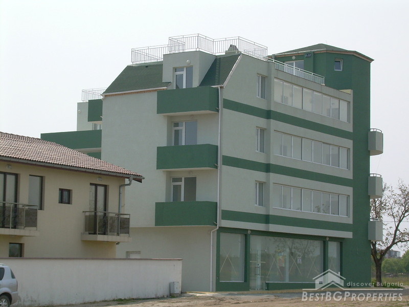 The building comprises four floors. The first, ground floor includes a reception and two shops. The above three floor are residential and each comprises 4 apartments and one studio. All apartments have panoramic views. The living area of the studios and apartments varies between 33 and 90 sq m. The biggest one is 90 sq m large. All apartments are for sale furnished. The building has very interesting design. The most interesting is the roof, which comprise it self a large summer veranda with view towards the sea, the ancient town of Nessebar and Sunny Beach resort.