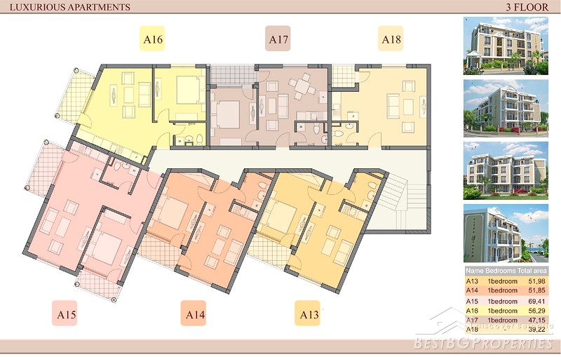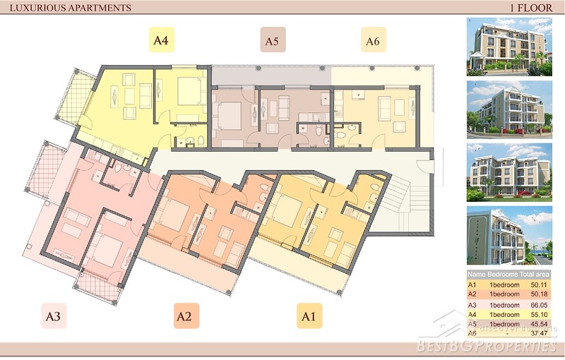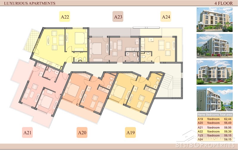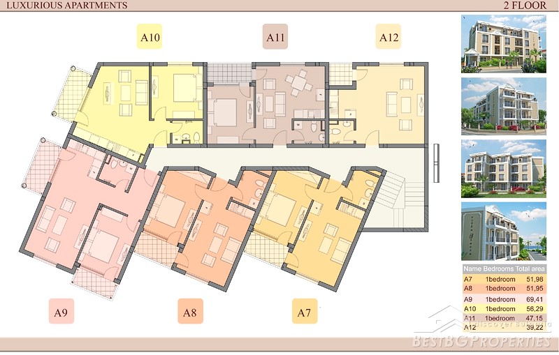 The development is a closed type complex consisting of one four story building. On each floor there would be 6 apartments in total. The apartments will vary in type and size with area from 39.22 sq m to 69.41 sq m. Each apartment will be sold luxuriously finished "on key" stage. Most of the apartments will have an amazing view over the sea.
