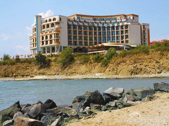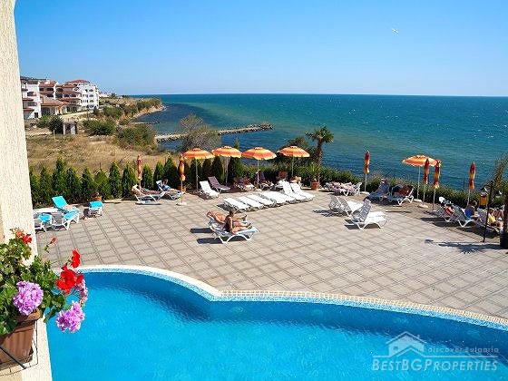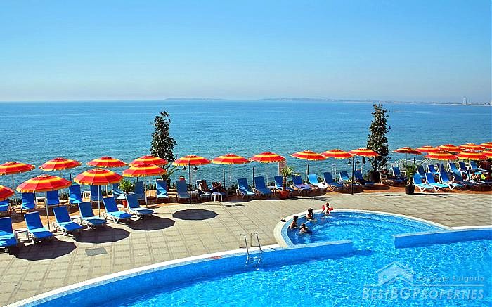 Description: The unique location of the complex allows it guests to enjoy the beautiful sea view from all apartments. The complex offers studios, apartments with one bedroom, apartments with two bedrooms and several VIP apartments. Each of them has modern interior design. The bathrooms are covered with "Martinelli" tiles, with built-in granite sinks and triplex shower cabins. The rooms have laminate flooring, latex covered walls and ceiling, MDF outdoor and interior doors, "Kommerling" PVC windows. The building is constructed only with high quality materials. The price includes furniture and equipment!