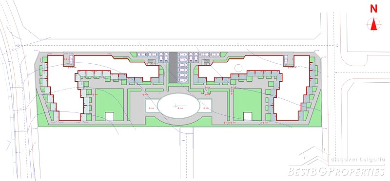 In front of the building between the two blocks, there is a wide open space provided for the swimming pool with sun loungers and beach umbrellas, outdoor bar, a children's playground. There is also a la large space for the green areas.