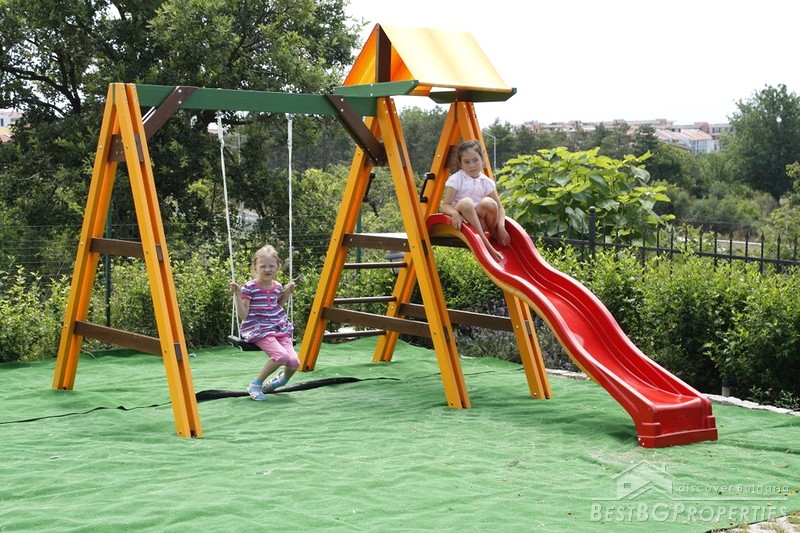 The complex is bordered by both - sea and mountains, making it a preferred destination for leisure, medical rehabilitation and spa tourism year round. The presence of air flow from the mountain to the sea creates a unique microclimate with a powerful healing effect on asthma and other lung diseases. It is no accident that 100 meters from the complex is located the only Bulgarian sea resort with traditions in the treatment of respiratory diseases and rheumatic problems. The complex consists of four sections "A", "B", "C" and "D", with separate entrances and elevators. The section "A" is a separate building. All buildings have the luxury monolithic construction (concrete and brick), all with heat isolation and waterproofing. The ground floors are faced with natural stone slabs and wood. Balcony railings - wood. The buildings are situated on different levels, which correspond to the landscape and make it possible for the apartments to have sea views. The complex is built on an area of 4700 sq m. In possession of the apartment owners and their guests are: