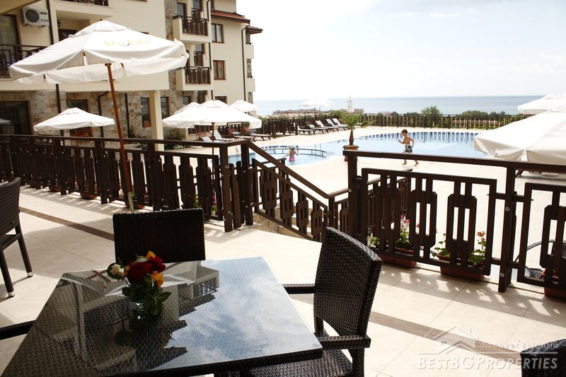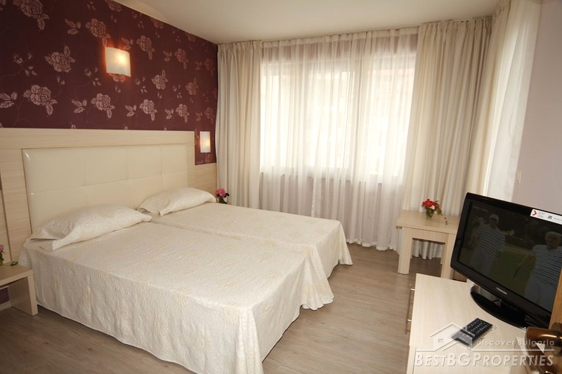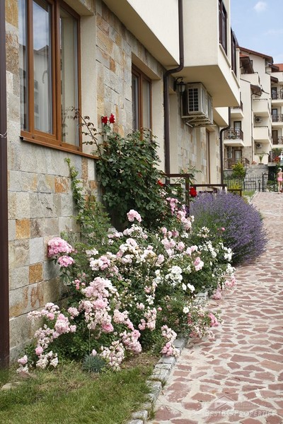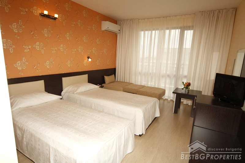 The resort complex is located on the Black Sea coast in the elite northern part of the resort "Sunny Beach" at the foot of the eastern part of Stara Planina, which creates a great harmony and combination of sea and mountains. The complex has good location in the heart of the biggest tourist area in Bulgaria. The distance from the town of Bourgas is 38 km and from the airport - 32 km, from the town of Nessebar - 8 km. The complex is located in close proximity (250 m) from the sea.