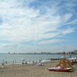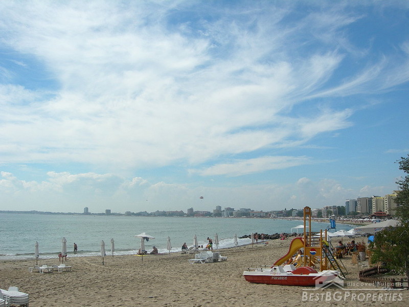 The coastal strip of the resort "Sunny Beach" is the longest in Bulgaria (10 km). The beach is covered with fine golden sand, sandy sea floor. The entrance into the water here is very flat, which is certainly a big plus for families with young children. The situation on the south slope, the picturesque landscape and fantastic sea view, are also additional advantage.