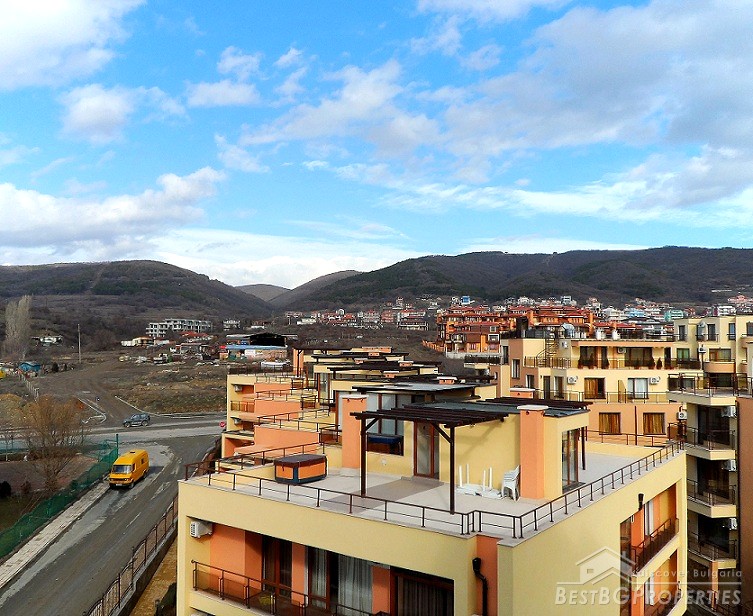 This complex is located in the village of St. Vlas near the magnificent sandy beach and 1.5 km from the center of Sunny Beach resort. The village of Saint Vlas is located in one of the most picturesque corners of the Bulgarian coast, hidden at the foot of Stara Planina Mountain, surrounded by sandy beaches. The village occupies the northern part Nessebar's Bay. It is 10 km away from Nessebar and 38 km from the international airport of Bourgas. The resort borders Sunny Beach and Elenite. The natural sea breeze combined with the crystal clear air are favorable conditions for the development of spa treatment and have a positive effect on patients with diseases of the respiratory tract.