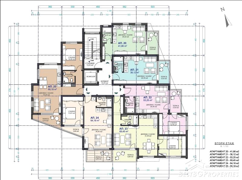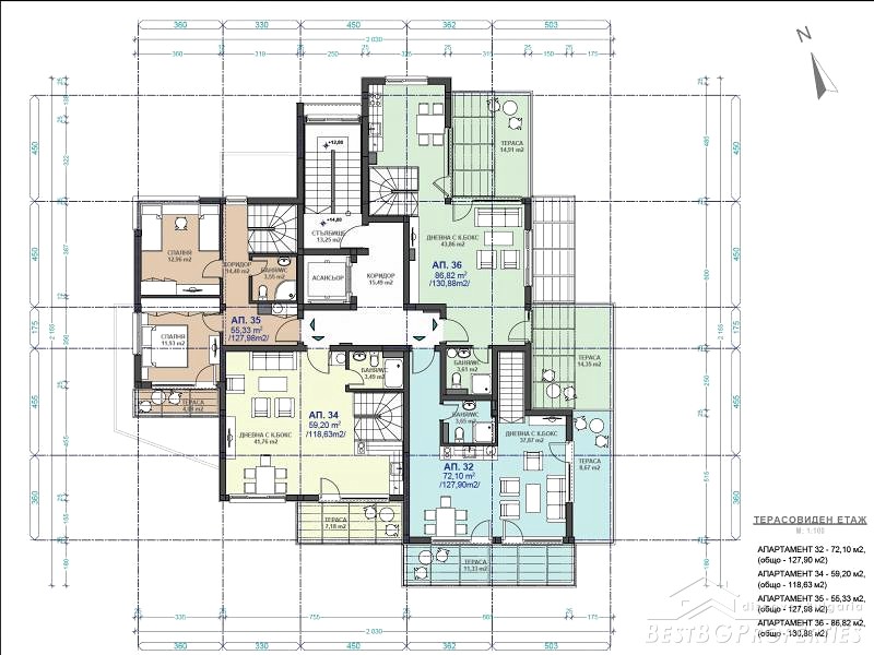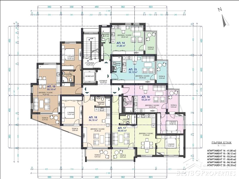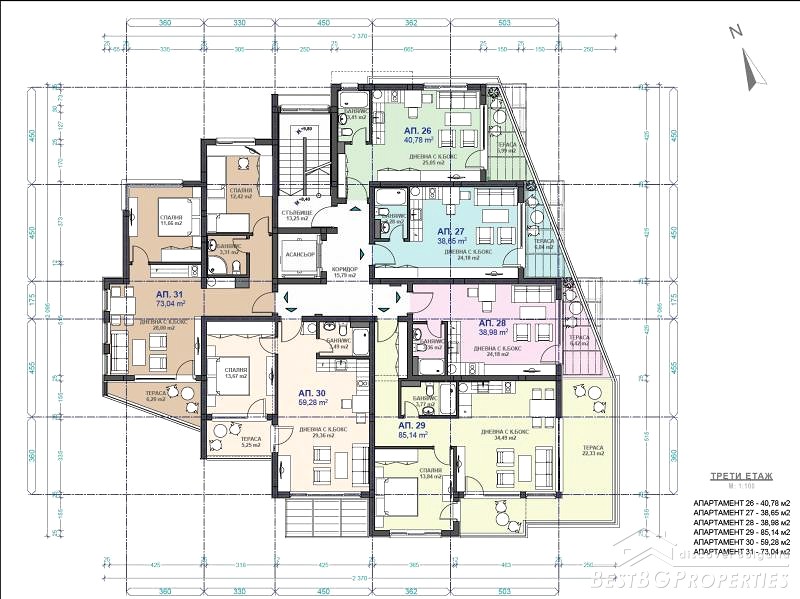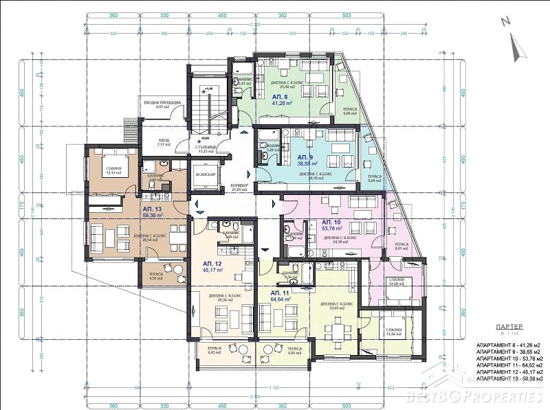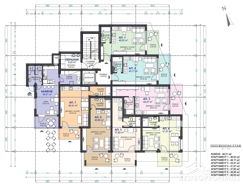 The building complex consists of seven floors. Each apartment is complete "on key". On the roof of the complex there will be a large a sun terrace, where you can relax and enjoy the beautiful panoramic views of the surrounding landscape. The territory of the complex will be fenced, well-kept; the yard provides a swimming pool with relaxation area, lounges and umbrellas are free for owners and guests, also parking. The complex has security and video surveillance, year-round.