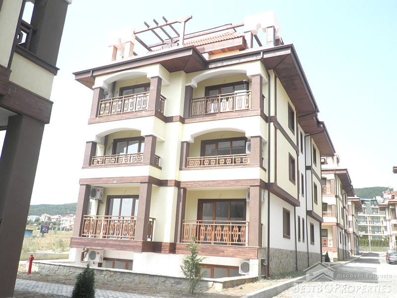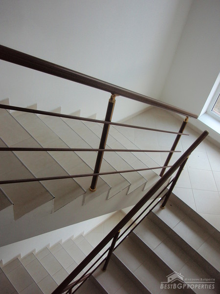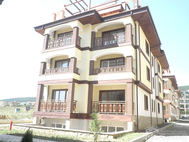 The complex is separated into 5 individual housings, three of them are distributed into 16 apartments (14 studios and 2 one bedroom apartments) - these are housing A, B and C. The rest of the housings - D and E are situated 10 apartments (8 studios and 2 one bedroom apartments). These two housings offer supermarkets on their first floors. Each of their second and third floors is separated into 4 studios. The last floor of both of the housings offers 2 one bedroom apartments, each one with two terraces and fabulous panorama to the sea, the green hills of the Balkan and Nesebar. The apartments in the complex are completed on turn key level. Their area starts from 40 sq m, up to 77 sq m.