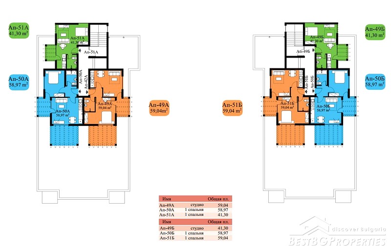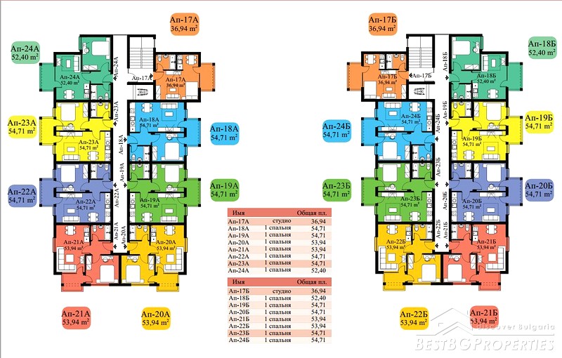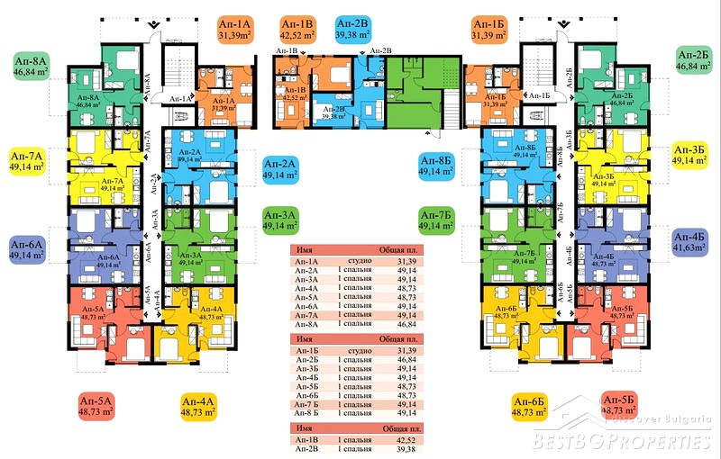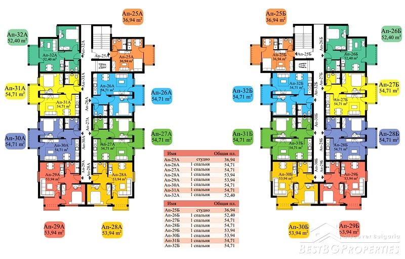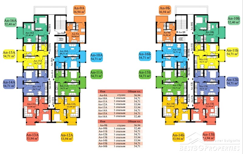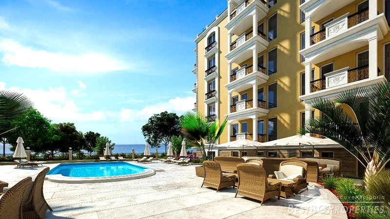 The complex has two buildings, 7 floors, in total 104 apartments - 14 studios, 90 one-bedroom apartments. Each apartment has a balcony with sea view and / or pool, some of them overlooking the enchanting green hills of the Stara Planina Mountain to the north side of the complex.