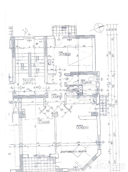 The available apartments for sale in this building are three. The first one is on the third floor and has total living area of 68 sq m. The prise is 35 500 euro.