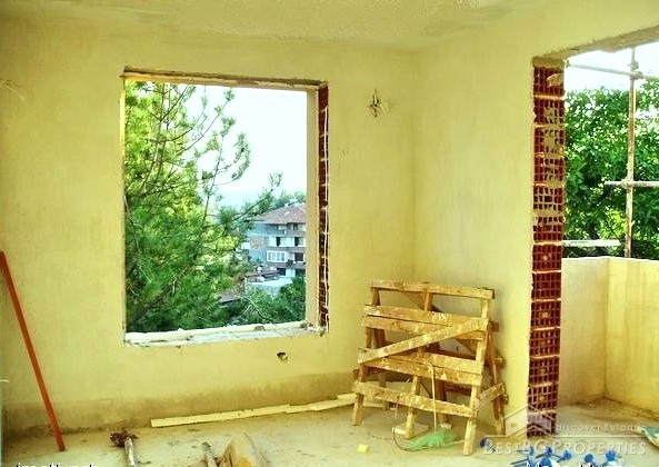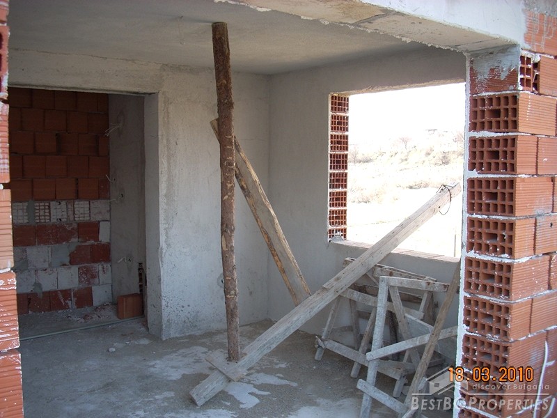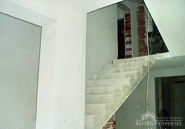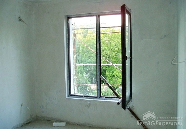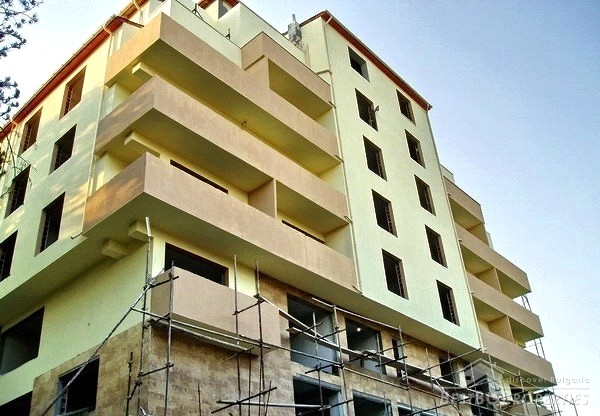 The building is nearly finished. It is going to be ready in within three months. It is six storeys high. There is a hydraulic elevator, thermal isolation, colored mineral plastering, PVC window joinery. The common parts are completely finished. On the inside there is electrical installation, water and sewer installations, cable TV, telephone, internet. The apartments are for sale on Bulgarian standards: on plastering and putty. There is a basement included in the price for each apartment. For additional cost you can buy a garage.